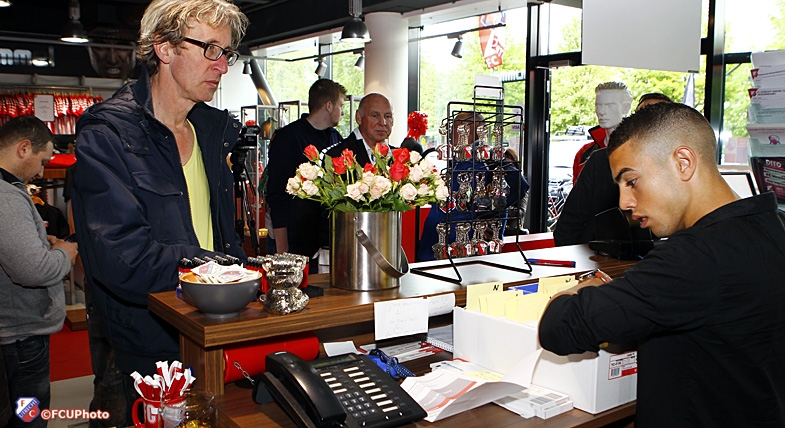 Sinds vanochtend is het constant druk geweest in de FC Utrecht Fanshop, waar hard wordt gewerkt om iedereen te voorzien van een kaartje. “Zoals het er nu uitziet, zal het wel snel uitverkocht zijn”, vertelt Chris van den Hoeven, Manager FC Utrecht Fanshop. “De hele dag al lopen supporters in en uit om kaarten te kopen. Je ziet dat Europees voetbal leeft bij de club, iedereen wil er zondag bij zijn. Het zal ongetwijfeld een ouderwets dagje FC Utrecht worden met een geweldige sfeer.”