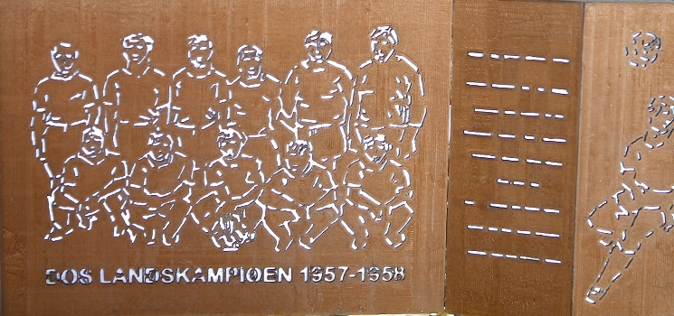 Het monument is een initiatief van een zestal individuen, dat zich heeft verenigd in Initiatiefgroep Monument DOS Landskampioen 1957/1958. Hans van Echtelt, Joop Leliveld, Gert van Es, Fred Nuwenhuis, Harry de Keijzer en Jan Jansen hebben investeerders bereid gevonden dit monument mogelijk te maken.