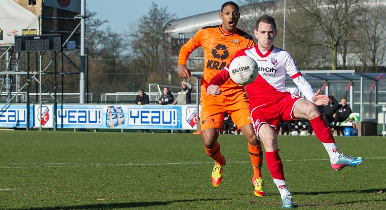 In de eerste helft kwam de thuisploeg op een 2-0 voorsprong. Shanwary kreeg de bal na een aanval over links en schoot de bal in de lange hoek voorbij de keeper van Jong FC Volendam. Vervolgens profiteerde Van Velzen van een fout in de opbouw bij FC Volendam. Een terugspeelbal belandde in de voeten van de aanvaller, die de bal over de keeper in de goal schoot. Nog voor rust deed FC Volendam wat terug en bracht met de 2-1 de spanning in de wedstrijd. In de tweede helft scoorden alleen de bezoekers nog eenmaal, waardoor de wedstrijd in een 2-2 gelijkspel eindigde.
