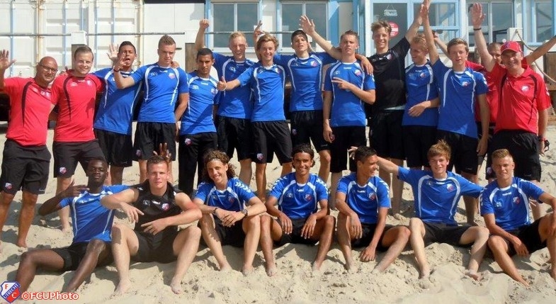 Op een zonovergoten Texel heeft FC Utrecht O17 vanaf afgelopen maandag tot en met woensdag gewerkt aan de voorbereiding voor het nieuwe seizoen. Met een mix van ontspanning en inspanning werd zowel aan de voetbalaspecten als aan de teambuilding gewerkt. Maandagmorgen vroeg werd de selectie van trainer/coach Robert Wijnands naar Den Helder vervoerd door die fantastische chauffeurs van de FC Utrecht busjes. Na een snelle overtocht over het Marsdiep werd de route per fiets vervolgd naar het hotel in Den Burg. Al meteen vanaf het begin zat het wedstrijdelement erin en werd om de punten gestreden door de vier groepen. Vanaf het hotel werd de route ’s-middags vervolgd naar de plaatselijke supermarkt voor het inslaan van de lunch. Ook hier moesten de groepen onderling goed samenwerken, want er was maar een smal budget voor iedere groep. Na het nuttigen van de lunch onderweg stond er in de middag een teambuildingactiviteit op het strand op het programma. Met het nodige enthousiasme probeerden de jongens de kites (een kruising tussen een vlieger en een parachute) in de lucht te krijgen en daarna te houden. Het duurde even voordat iedereen het onder de knie had. Met een wedstrijdelement als afsluiting van de activiteit probeerden de spelers tenslotte punten te verdienen voor hun groep.
