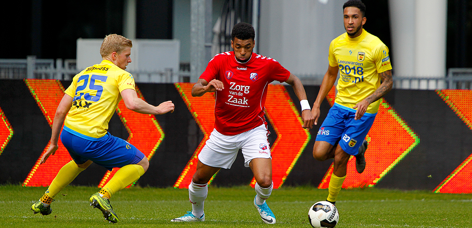 De tweede treffer van de Friezen, daar is geen grensrechter voor nodig om die te constateren. Hij valt een minuut voor tijd, en wordt door Tarik Tissoudali gemaakt. De invaller breekt door de laatste Utrechtse linie en schiet binnen: 0-2. Hij maakt gebruik van de ruimte die ontstaat doordat Jong FC Utrecht flink druk naar voren zet. ‘Alles of niets’, heet dat. In dit geval loopt het uit op niets voor de Utrechters.