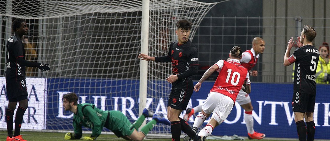 Op dat moment host MVV Maastricht niet meer, maar zwalkt het. De polonaise staat op scheuren, de ploeg heeft het lastig tegen de Utrechtse beloften. Venema bezorgt Maxime Gunst, Dimitri Lavalée en Ricardo Ippel overwerk, en daardoor geniet Arweiler bij vlagen wat meer vrijheid dan hij gewend is. Maar juist op een moment dat de Duitse aanvaller dubbele dekking heeft, speelt hij zichzelf in scoringspositie. In een paar tellen tijd ontdoet de spits zich achtereenvolgens van Ippel en Shermar Martina en gaat hij alleen af op Luuk Koopmans. De keeper mazzelt: Arweiler schiet naast. Prins Carnaval ziet het ook: MVV Maastricht kruipt door het oog van de naald in die fase.