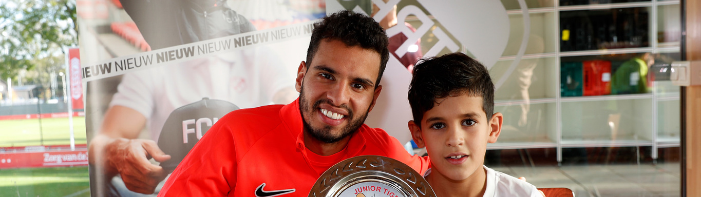 Tiger Adam Elouardiji (8 jaar) was vandaag (woensdag) samen met zijn moeder, broertje en zusje afgereisd vanuit de Utrechtse wijk Overvecht voor de overhandiging van de award aan zijn voorbeeld op Sportcomplex Zoudenbalch. Deze overhandiging was tevens een unieke, want Tiger & Tigergirl hebben sinds deze maand een speciale Junior Tigers-schaal voor de winnaar! Zo kunnen de spelers van FC Utrecht aan iedereen laten zien dat zij de beste speler van de maand waren volgens de kidsclubleden van FC Utrecht.