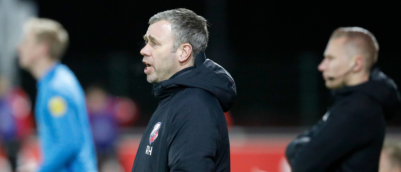 “Als je verliest ben je chagrijnig, dus dat ben ik nu ook”, begint René Hake zijn analyse van de wedstrijd. “In eerste instantie door het resultaat, want je speelt altijd om wedstrijden te winnen. En daarnaast over bepaalde onderdelen in ons spel. We hadden de wedstrijd eerder kunnen en moeten beslissen, maar we verzuimden om op voorsprong te komen. In de laatste fase winnen we onvoldoende duels en tweede ballen. We laten de spits dan te makkelijk inkoppen en dan sta je met lege handen.