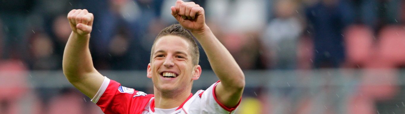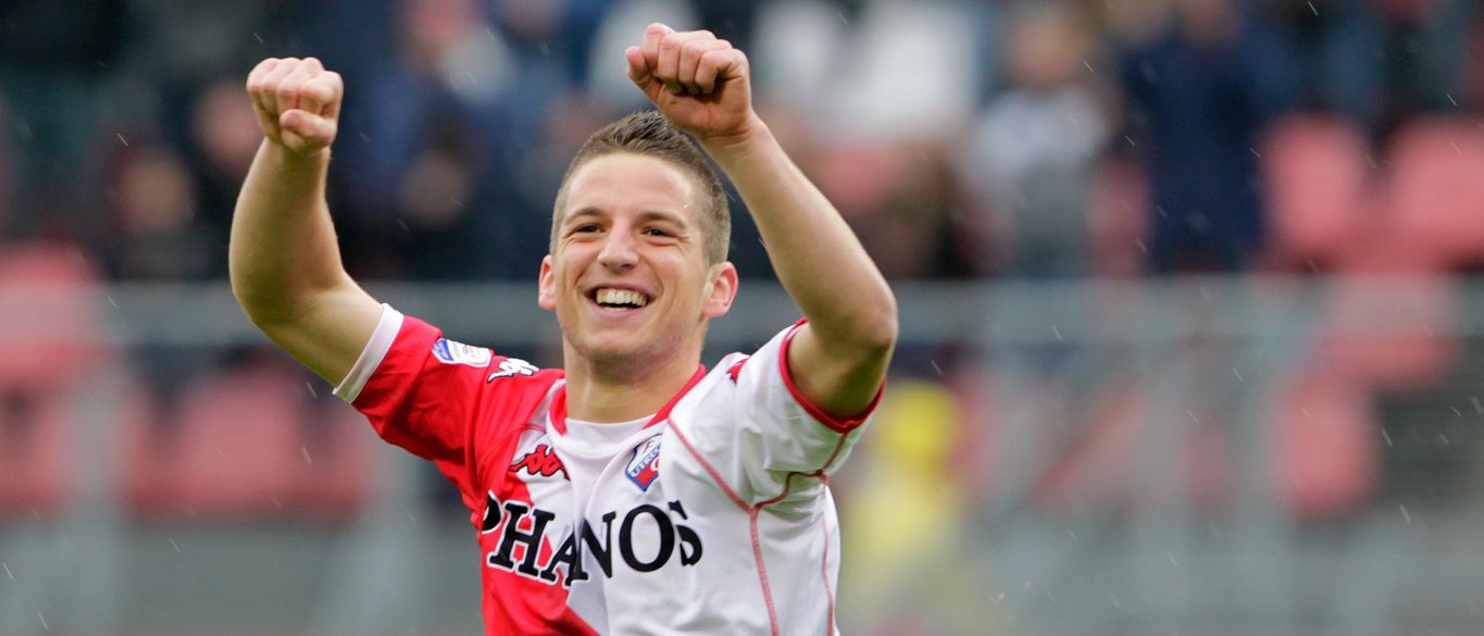 Ze liepen er natuurlijk al tijden met ‘m weg, de supporters van Napoli met Dries Mertens. Maar sinds vorige week kan de oud-speler van FC Utrecht in Napels helemaal niet meer stuk. De Rode Duivel scoorde in de Champions League op fraaie wijze tegen FC Barcelona en tekende daarmee voor zijn 121ste doelpunt als speler van Napoli. Daarmee is hij gedeeld clubtopscorer allertijden van de immens populaire club uit het zuiden van Italië. Met Marek Hamsik deelt hij – vooralsnog – de eerste positie op die lijst. Verder in de top van dat klassement? Stuk voor stuk kleppers. Diego Maradona (115 goals), Attila Sallustro (107), Edison Cavani (104) en Antonio Vojak (103) scoorden tot nu toe ook vaker dan 100 keer voor Napoli. Maar niemand dus vaker dan Mertens, op wiens voetbalpalmares ook 86 wedstrijden en 21 goals namens FC Utrecht prijken.