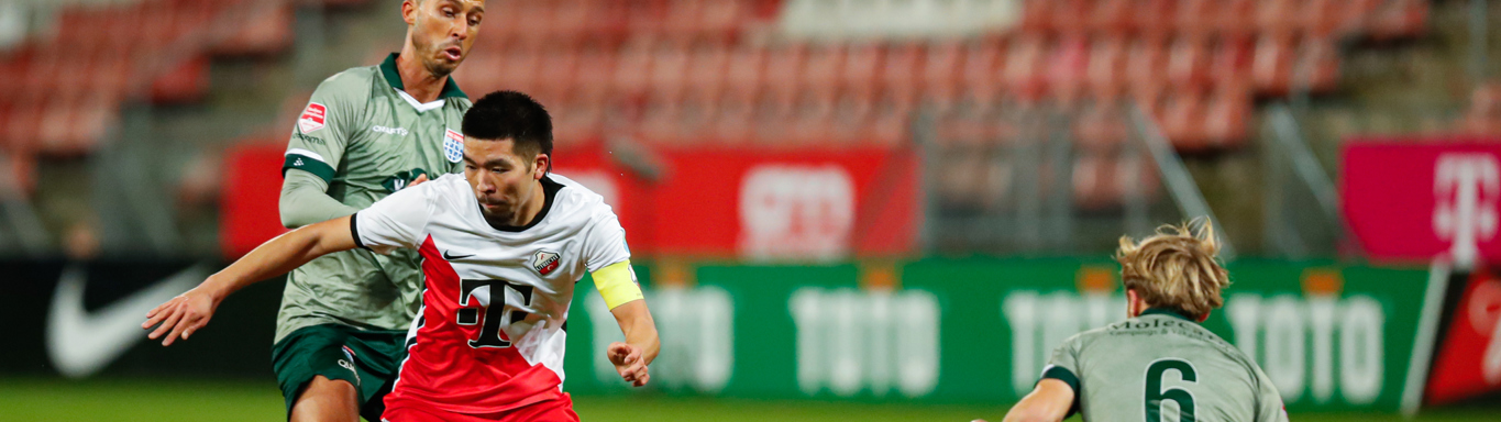 Yuya Ikeshita krijgt de bal in kansrijke positie op een meter of twintig afstand van het doel van PEC Zwolle. Hij twijfelt niet en test doelman Jasper Schendelaar van de Overijsselse ploeg maar eens. In een fase waarin de Domstedelingen kansen hebben op de openingstreffer valt ook dit afstandsschot net niet goed. Schendelaar kan redding brengen en het blijft 0-0.