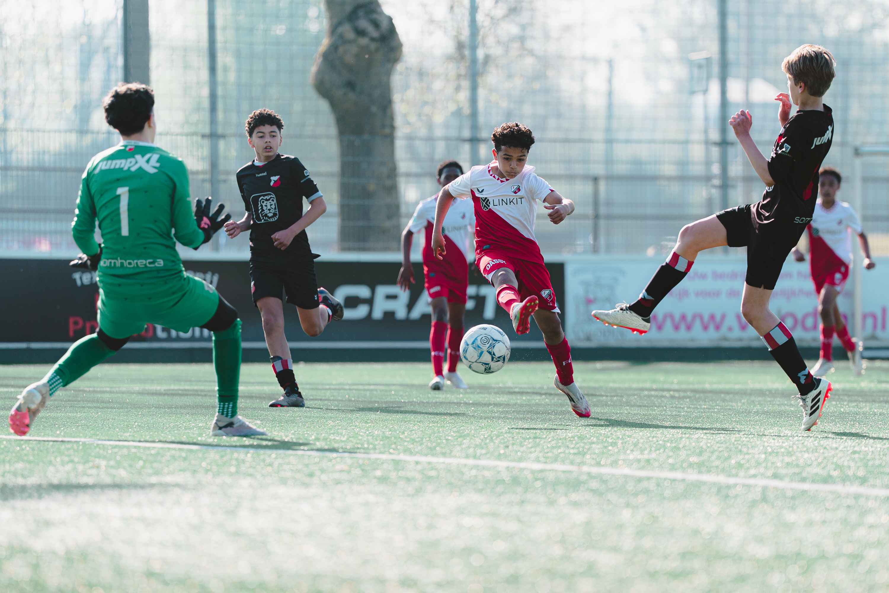 HBS O13 bleef voetballend komen door van achter uit op te bouwen, maar dat ging op sommige momenten mis wegens het goede druk zetten van FC Utrecht O13-2. Het was uiteindelijk Sami Bardan die het zoveelste Haagse balverlies op de eigen helft wist af te straffen door de bal handig met buitenkant schoen binnen te schieten.