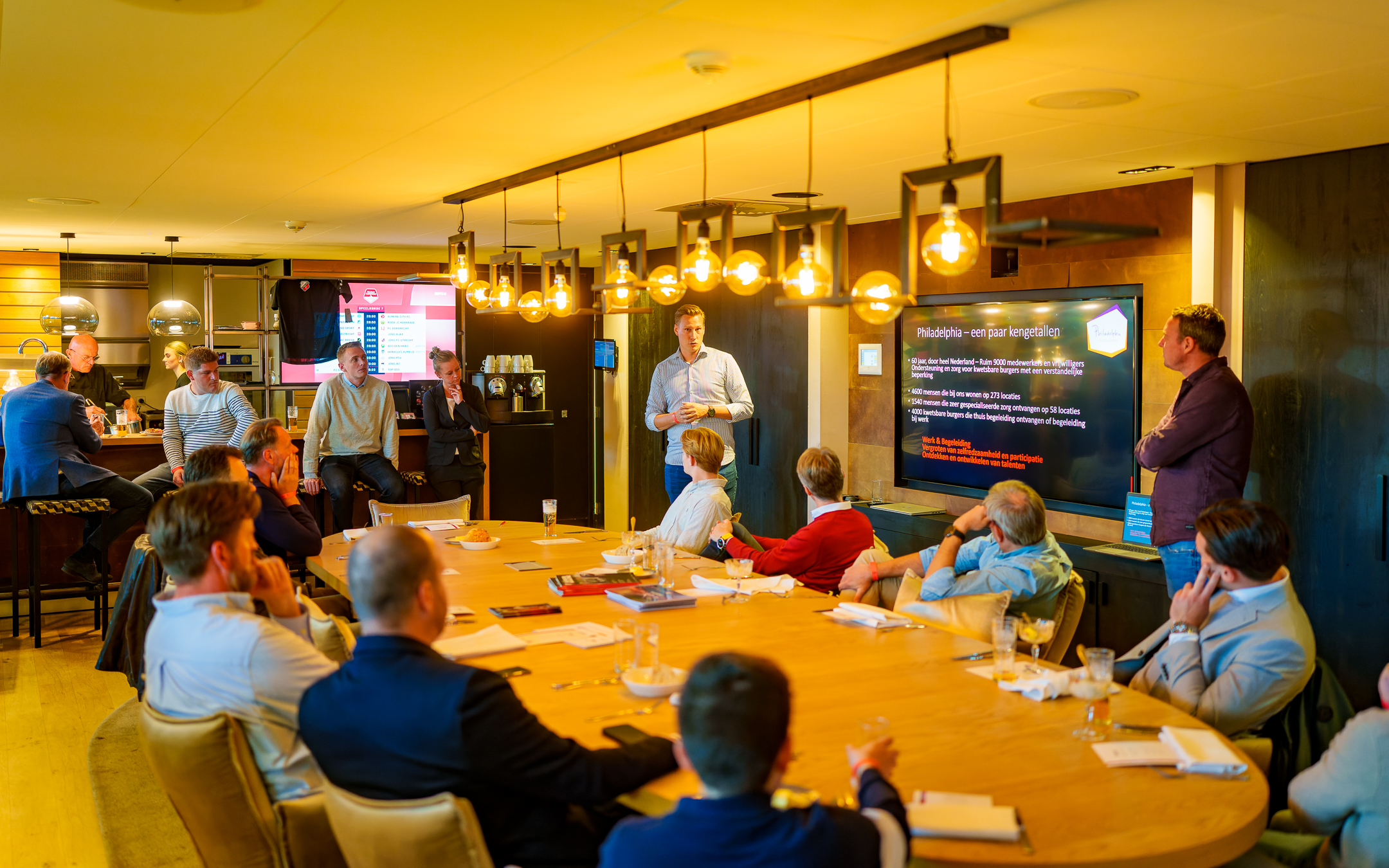 Een unieke ervaring op de vierde of vijfde verdieping van Stadion het Galgenwaard. Kijk vanaf je luxe seat op het terras uit over het iconische veld. Na afloop van de wedstrijd is het tijd om samen na te borrelen of ben je welkom voor een nabeschouwing in de Executive Lounge. In ‘t Wed & Waard kun je genieten van live-entertainment.