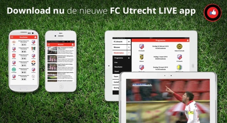 Heb jij de nieuwe FC Utrecht App al? Dan weet je inmiddels dat je met deze vernieuwde app alle wedstrijden van FC Utrecht en de andere Eredivisie-clubs live op je tablet of telefoon kunt zien. Door je eenvoudig te registeren bekijk je met één account alle wedstrijden van FC Utrecht en de concurrentie, waar je ook bent. Om supporters kennis te laten maken met deze mogelijkheid om geen wedstrijd meer te missen, bekijk je in de maand april alle live-wedstrijden in de competitie gratis via de FC Utrecht App!