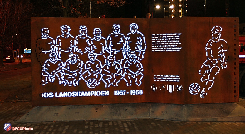 Vrijdagavond voorafgaand aan de thuiswedstrijd tegen N.E.C. zijn veel supporters wezen kijken naar het DOS-monument dat voor de hoofdingang van Stadion Galgenwaard staat. Op de parkeerplaats voor de hoofdingang staat op een niet te missen plaats het monument dat herinnert aan het landskampioenschap van de Utrechtse club in 1958. FC Utrecht.TV was bij de onthulling van het monument aanwezig.