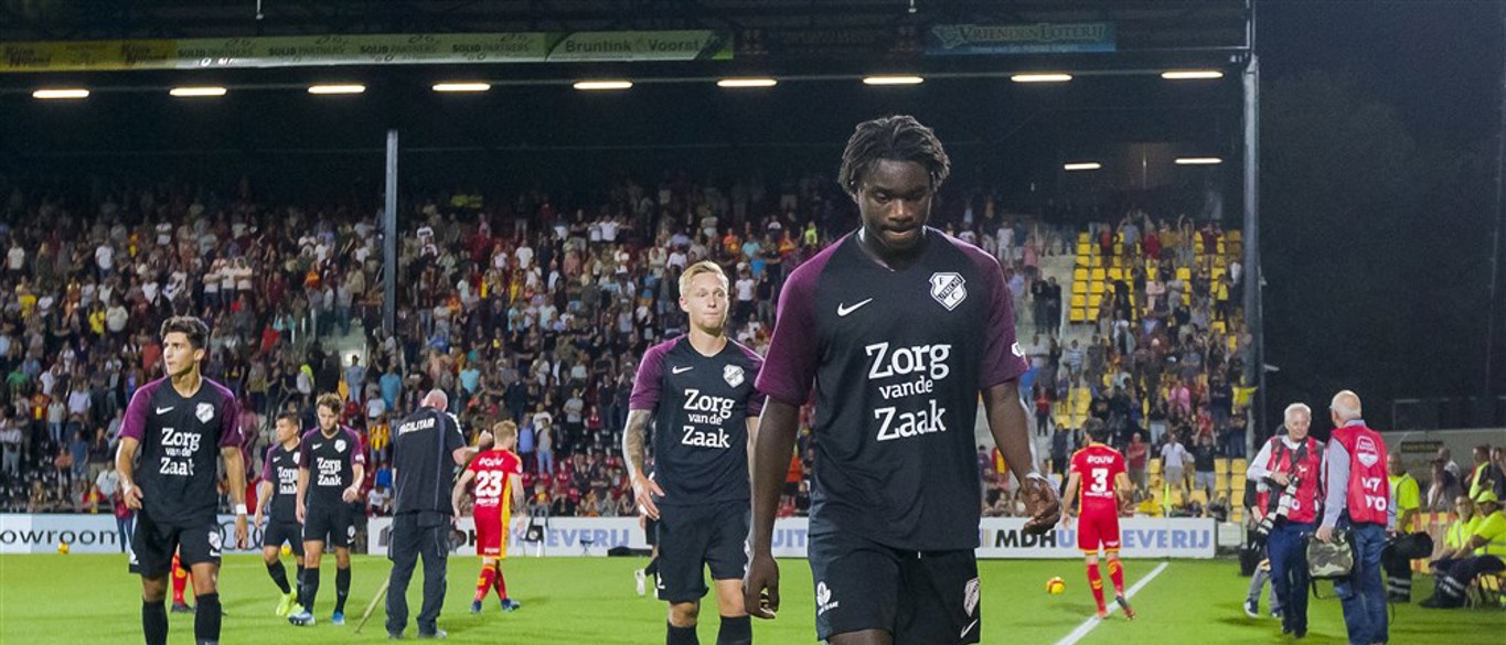 Daar, onder toeziend oog van twaalf vanuit de Domstad meegereisde supporters versus dik achtduizend toeschouwers die de thuisploeg ondersteunen, is het Jong FC Utrecht dat de eerste grote kans van de avond krijgt. De partij is nog maar net begonnen, of Jonas Arweiler zorgt er met een steekpass op maat voor dat Odysseus Velanas vrij opduikt voor Hobie Verhulst. De sluitpost van de ploeg uit Overijssel komt snel van zijn lijn en voorkomt dat de aanvallende middenvelder uit Zeist namens de Domstedelingen de score opent. De thuisploeg bekomt niet alleen snel van die schrik, maar neemt vervolgens ook in rap tempo afstand van de Domstedelingen. Want na tien minuten voetballen staat het niet 0-1, maar 2-0 in Overijssel. Daar schieten Maël Corboz en Richard van der Venne van dichtbij raak. Onberispelijk.