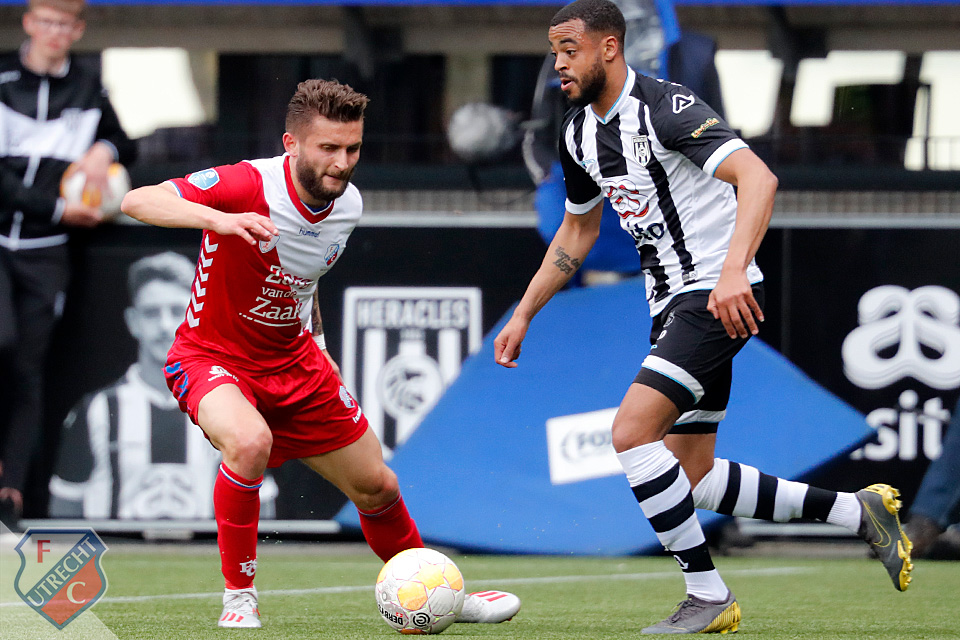 Het blijft dus, dankzij de tackle van de aanvoerder, bij 0-2. Die stand wordt al voor de pauze bereikt, trouwens. Tien minuten voor de break benut Simon Gustafson een penalty die wordt gegeven na een overtreding op Riechedly Bazoer: 0-1. Voor de Zweed in Utrechtse dienst is het de derde keer dit seizoen dat hij scoort tegen de Heraclieden. Eerder doet hij dat al in de competitieduels met de ploeg uit Almelo in zowel Overijssel (1-5 voor FC Utrecht) als de Domstad (3-1 voor de Utrechters). En nu is hij dus de man die de score opent in de heenwedstrijd van de halve finale van de play-offs om Europees voetbal. Een fase van de competitie waarin elke goal buitengewoon waardevol is.