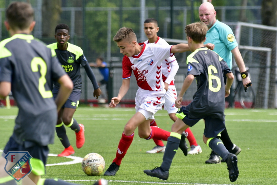 In een onderling treffen tegen directe concurrent PSV mocht de onder 14 trachten de naaste belager van zich af te houden. PSV was gebaat bij een zege om zo FC Utrecht in de stand nog te kunnen achterhalen.