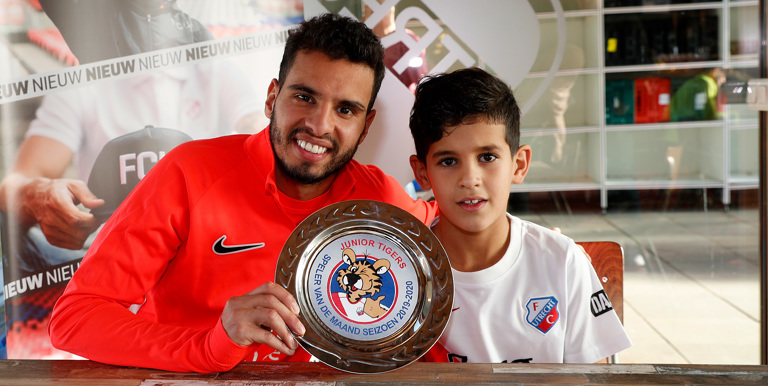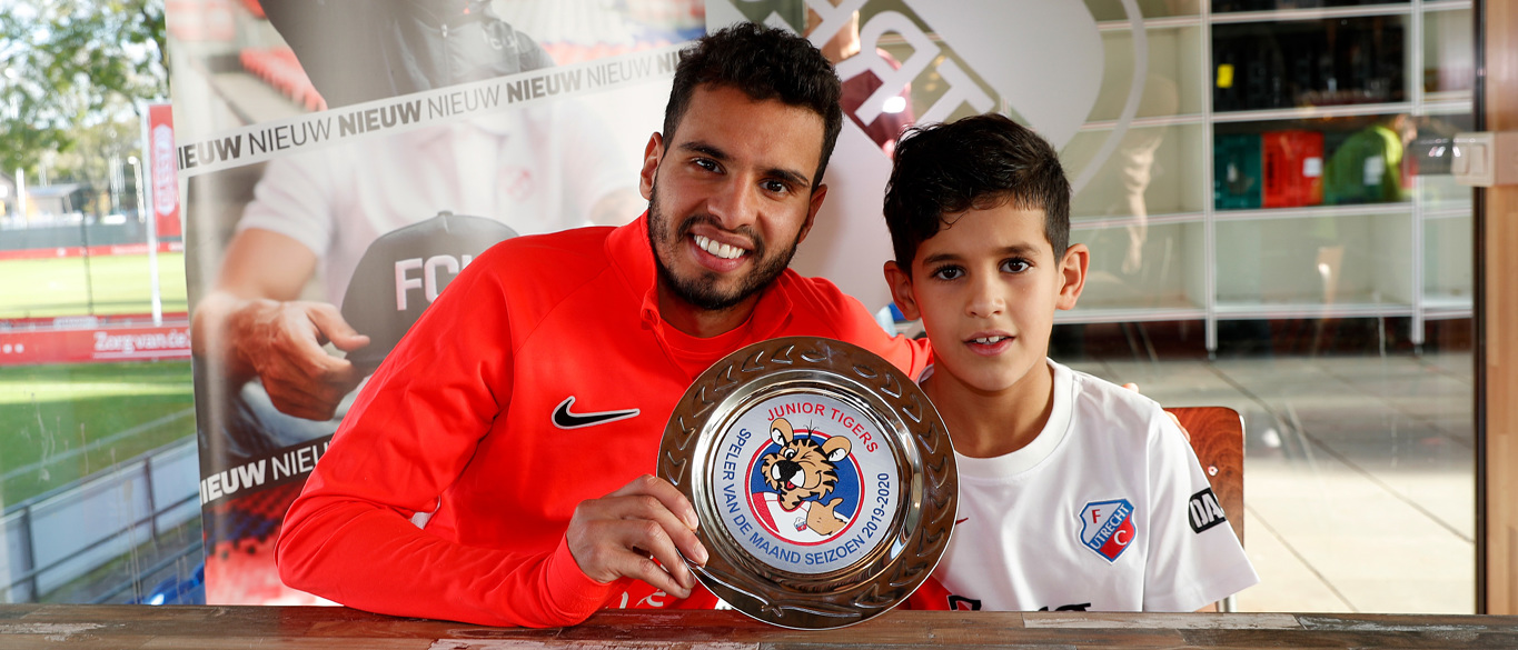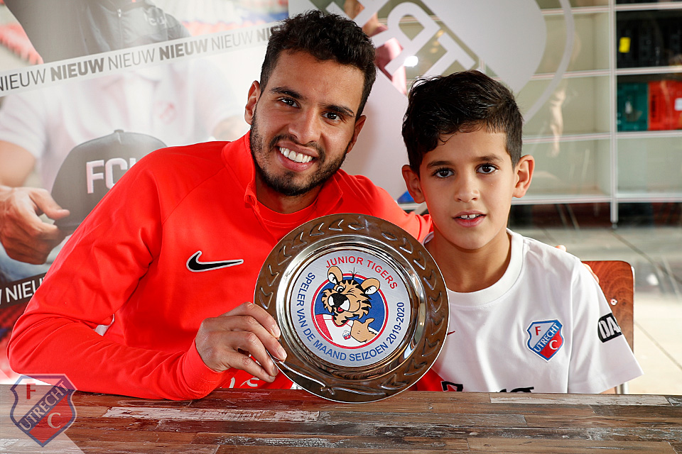Tiger Adam Elouardiji (8 jaar) was vandaag (woensdag) samen met zijn moeder, broertje en zusje afgereisd vanuit de Utrechtse wijk Overvecht voor de overhandiging van de award aan zijn voorbeeld op Sportcomplex Zoudenbalch. Deze overhandiging was tevens een unieke, want Tiger & Tigergirl hebben sinds deze maand een speciale Junior Tigers-schaal voor de winnaar! Zo kunnen de spelers van FC Utrecht aan iedereen laten zien dat zij de beste speler van de maand waren volgens de kidsclubleden van FC Utrecht.