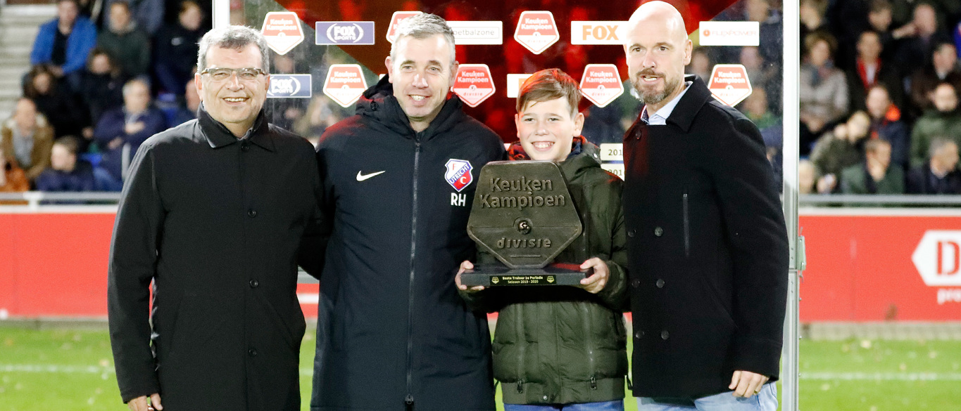 Jong FC Utrecht speelt vanavond (vrijdag) met 2-2 gelijk tegen De Graafschap. Voorafgaand aan dat duel ontving trainer/coach René Hake het Bronzen Schild. In de mixedzone van Sportcomplex Zoudenbalch stond hij na afloop voor de camera van FC Utrecht.