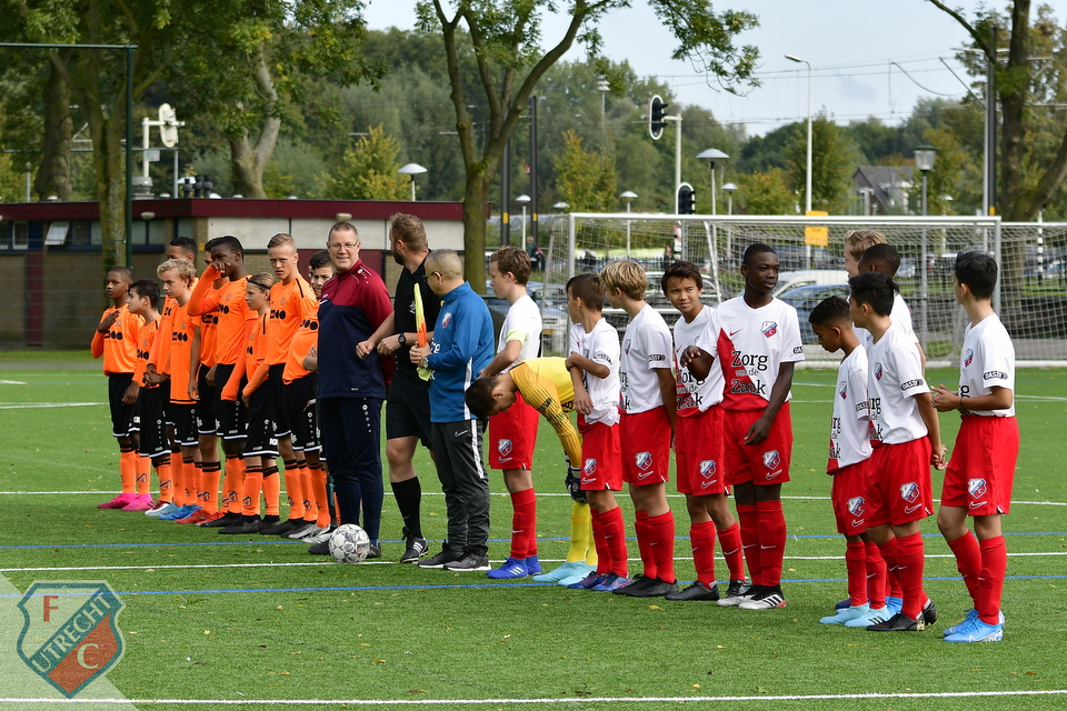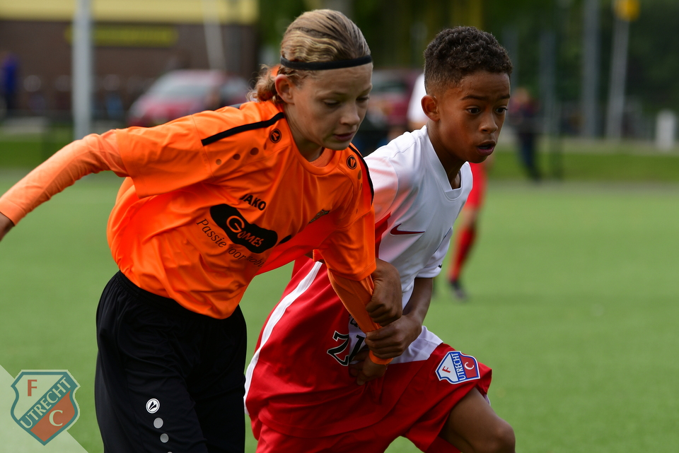 Op een mooie, zonnige zaterdagochtend stonden de gladiatoren van FCU onder 14 klaar om de lijn van de afgelopen weken, met overwinningen op de leeftijdsgenoten van NAC en PEC Zwolle, door te trekken. Trainer Brian Groeneweg trapte de wedstrijdbespreking af en Tijn, Olivier en Ilyas gaven het speelplan aan vanuit hun eigen linies. Dat kwam er in de wedstrijd wat moeizamer uit dan gedacht: Volendam bleek een ploeg die zowel fysiek, als voetballend prima stond. Onze jongens leken in de beginfase dan ook een tikje onder de indruk. Dat bleek uit de 0-1 van Volendam, waarbij de nummer 8 alle ruimte kreeg voor een solo en de bal op een presenteerblaadje aan de spits gaf. FCU kwam halverwege de 1e helft op 1-1 na prima combinatiespel en goed doorzetten van Jahrnell, kreeg steeds meer controle over de wedstrijd en zette ook steeds meer druk naar voren. Daarop schakelde Volendam fysiek een tandje bij en na de 3e harde charge op Gustav in een kort tijdsbestek, moest deze zich laten vervangen door Ronnie. In de 25e minuut, na een mogelijk buitenspelmoment, sneed Volendam door de FCU defensie en kreeg een penalty mee: 1-2. Aan de overkant kreeg Noe op zijn beurt, na wederom prima combinatiespel van FCU kant, ook een penalty mee. Jonathan maakte geen fout vanaf 11 meter: 2-2. FCU probeerde door te drukken, maar het was Volendam dat kort voor rust uit een corner 2-3 maakte. Direct na de rust werd het zelfs 2-4. FCU bleef in de wedstrijd met een sterk spelende Noe, die met zijn loopacties constant voor gevaar zorgde. Een snel genomen vrije trap van hem leidde ook de 3-4 in. Jahlani kwam er aan de rechterkant doorheen, schoot op de paal en via een carambole ging de bal er alsnog in. Het op en neer golvende spel van beide ploegen was genieten voor de neutrale toeschouwer. Volendam was een aantal maal gevaarlijk in de omschakeling en kwam halverwege de 2e helft met een vlammend afstandsschot op 3-5. FCU gaf niet op en bleef kansen en mogelijkheden creƫren, maar deze waren niet besteed aan o.a. Cheveyo, Noe en Ronnie. In de slotfase werd het nog 3-6 na een persoonlijke fout in de FCU verdediging en was de wedstrijd gespeeld. FCU legde in delen van de wedstrijd prima combinatiespel op de mat, toonde ook vechtlust door tot het einde door te gaan, maar dit bleek niet genoeg tegen een goed FC Volendam. Wonden likken, werken aan de ontwikkelpunten en op naar de volgende wedstrijd.