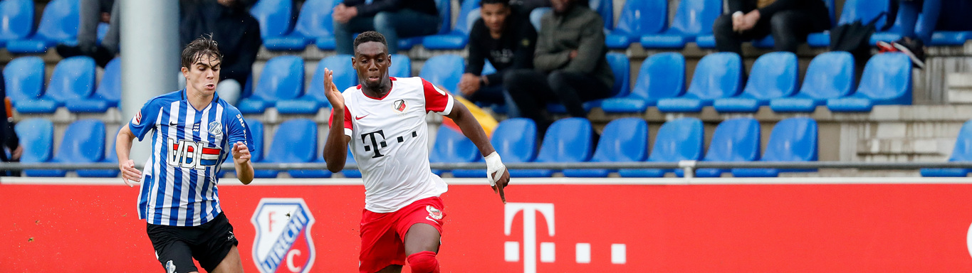 Maak je zelf de kansen niet af, dan krijg je de vloek dat de eerste beste kans van de tegenpartij er direct in gaat. En dat is precies wat er vanavond gebeurt. De beloftenploeg van FC Utrecht beleeft een sterke openingsfase, maar het zijn de Eindhovenaren die vanavond de score openen. Kaj de Rooij stoomt na tien minuten op aan de linkerflank. De vleugelspeler dribbelt richting het zestienmetergebied en schuift bal vervolgens achter doelman Fabian de Keijzer: 0-1.