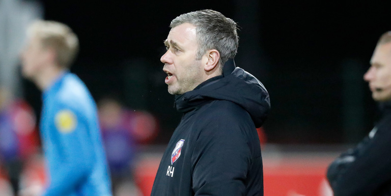 “Als je verliest ben je chagrijnig, dus dat ben ik nu ook”, begint René Hake zijn analyse van de wedstrijd. “In eerste instantie door het resultaat, want je speelt altijd om wedstrijden te winnen. En daarnaast over bepaalde onderdelen in ons spel. We hadden de wedstrijd eerder kunnen en moeten beslissen, maar we verzuimden om op voorsprong te komen. In de laatste fase winnen we onvoldoende duels en tweede ballen. We laten de spits dan te makkelijk inkoppen en dan sta je met lege handen.