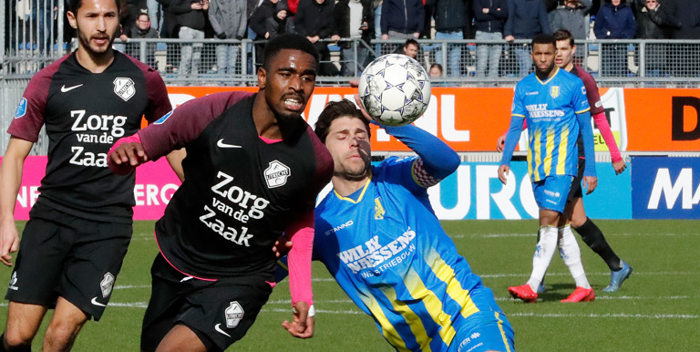 Even ontsnapt hij aan de aandacht van zijn directe bewaker. En dan zit het invaller Darren Maatsen van RKC Waalwijk ook niet tegen; de bal valt perfect voor zijn voeten. Maatsen wipt het speeltuig over keeper Jeroen Zoet - de man die in het verleden 77 partijen namens RKC Waalwijk speelde - heen en zet daarmee de wedstrijd volledig op z’n kop: 2-1 voor de Brabanders.