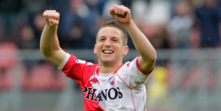 Ze liepen er natuurlijk al tijden met ‘m weg, de supporters van Napoli met Dries Mertens. Maar sinds vorige week kan de oud-speler van FC Utrecht in Napels helemaal niet meer stuk. De Rode Duivel scoorde in de Champions League op fraaie wijze tegen FC Barcelona en tekende daarmee voor zijn 121ste doelpunt als speler van Napoli. Daarmee is hij gedeeld clubtopscorer allertijden van de immens populaire club uit het zuiden van Italië. Met Marek Hamsik deelt hij – vooralsnog – de eerste positie op die lijst. Verder in de top van dat klassement? Stuk voor stuk kleppers. Diego Maradona (115 goals), Attila Sallustro (107), Edison Cavani (104) en Antonio Vojak (103) scoorden tot nu toe ook vaker dan 100 keer voor Napoli. Maar niemand dus vaker dan Mertens, op wiens voetbalpalmares ook 86 wedstrijden en 21 goals namens FC Utrecht prijken.