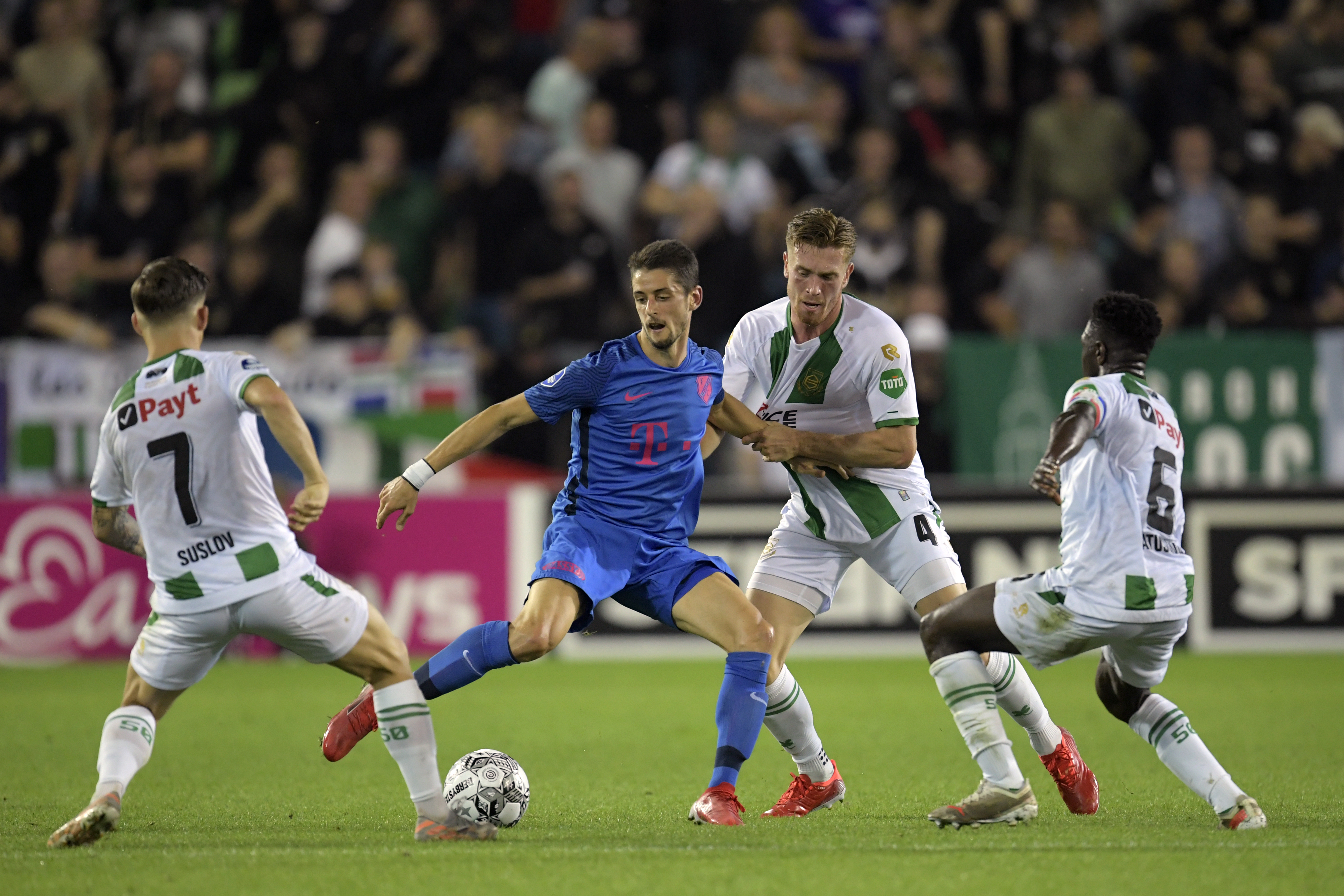 Maar dat de ploeg van René Hake de rug recht houdt in ‘De Groene Kathedraal’, dat is ook een feit. Gesteund door 503 meegereisde supporters uit Utrecht slaat de voor het eerst in het blauwe uittenue spelende Utrechtse FC de nodige FC Groningen-aanvallen met verve af.