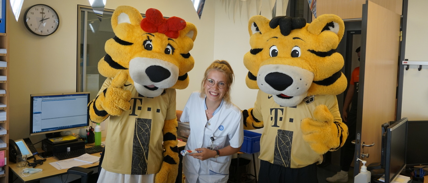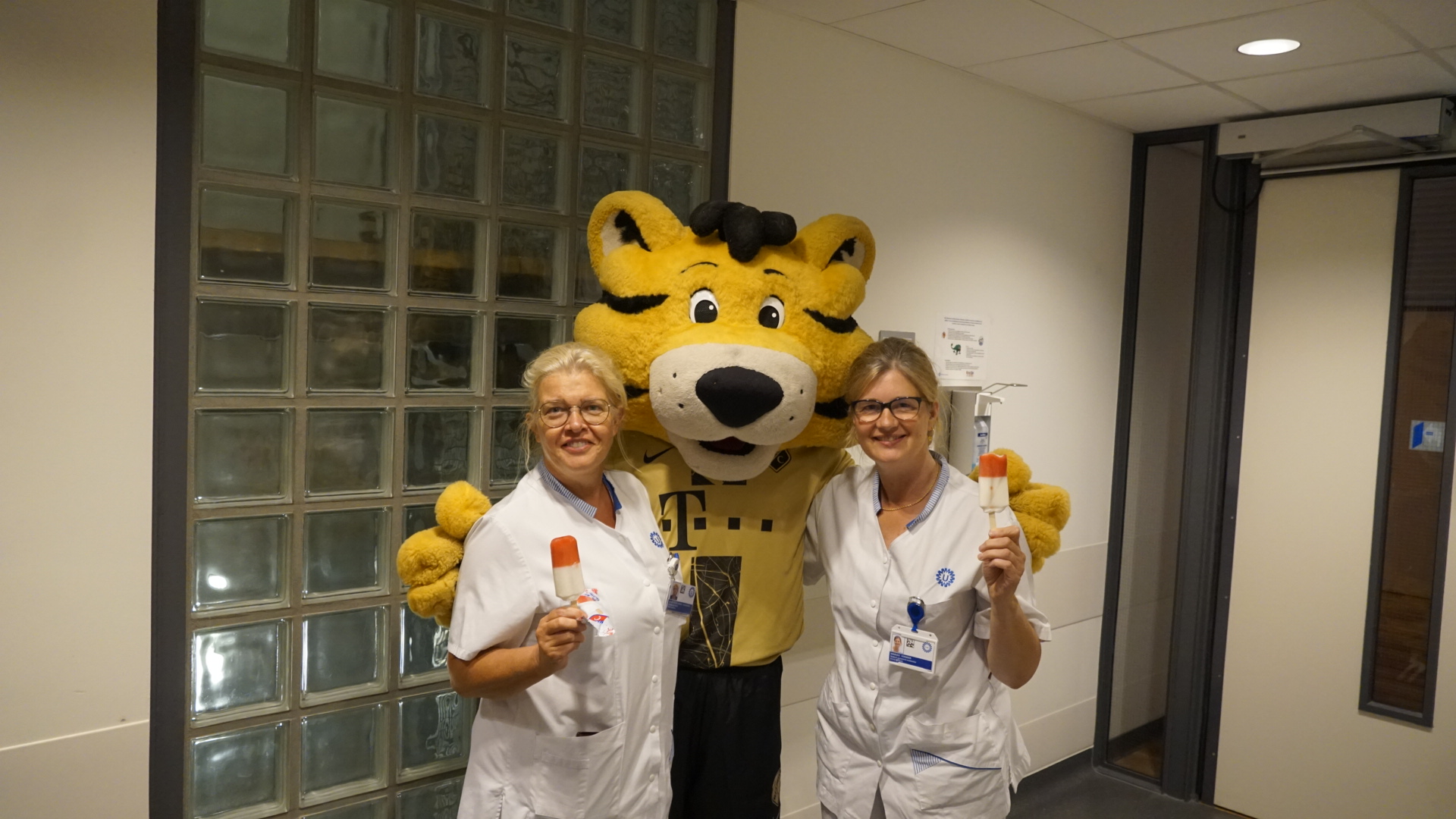 Op elke afdeling kwamen Tiger en Tigergirl langs om iedereen te voorzien van een lekker FC Utrecht-ijsje. Da’s smullen met een goed gevoel, want het ijsje bevat namelijk geen kleurstoffen en ook geen toegevoegde suikers. Dat maakt de ijskoude snack tot een verantwoorde lekkernij.