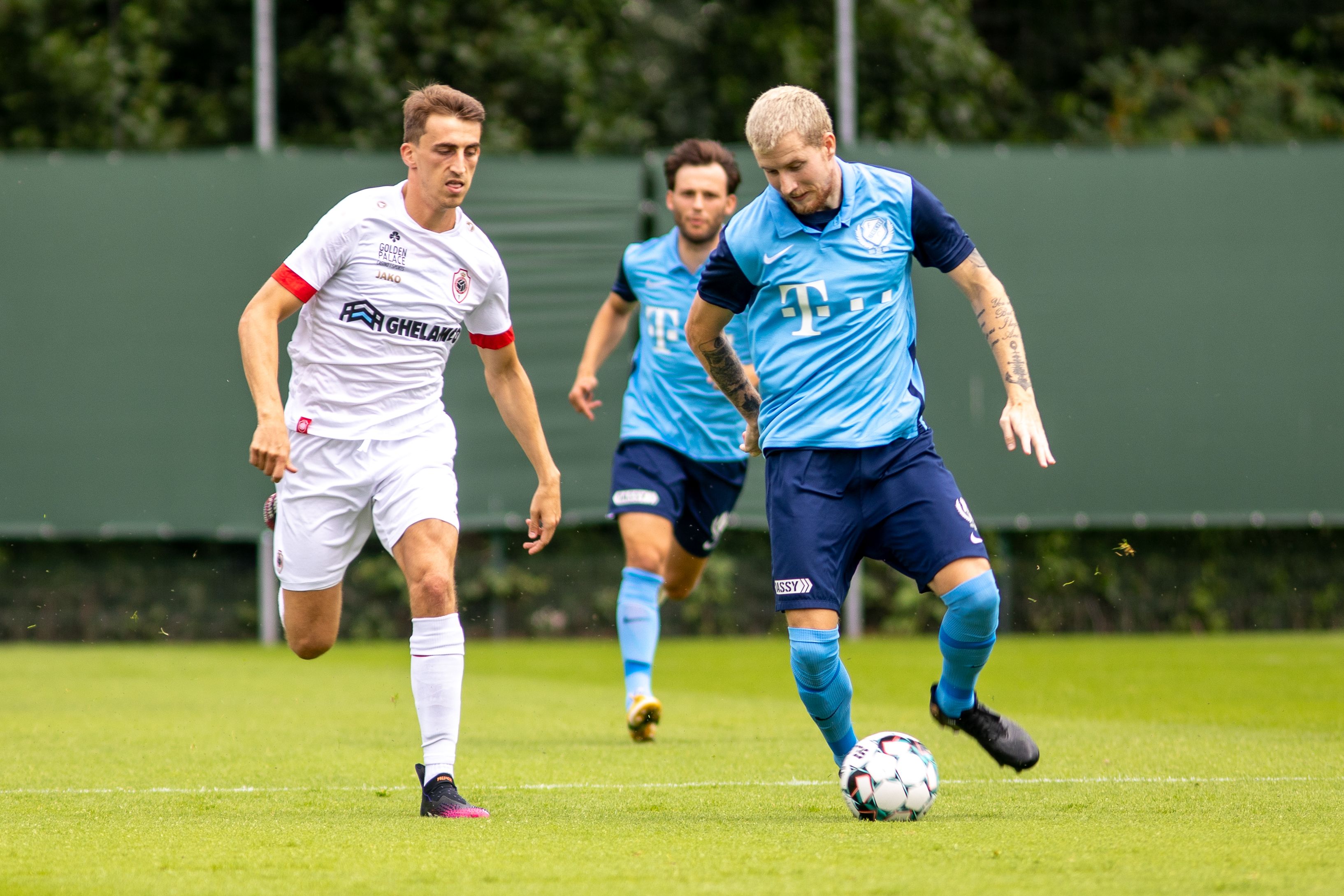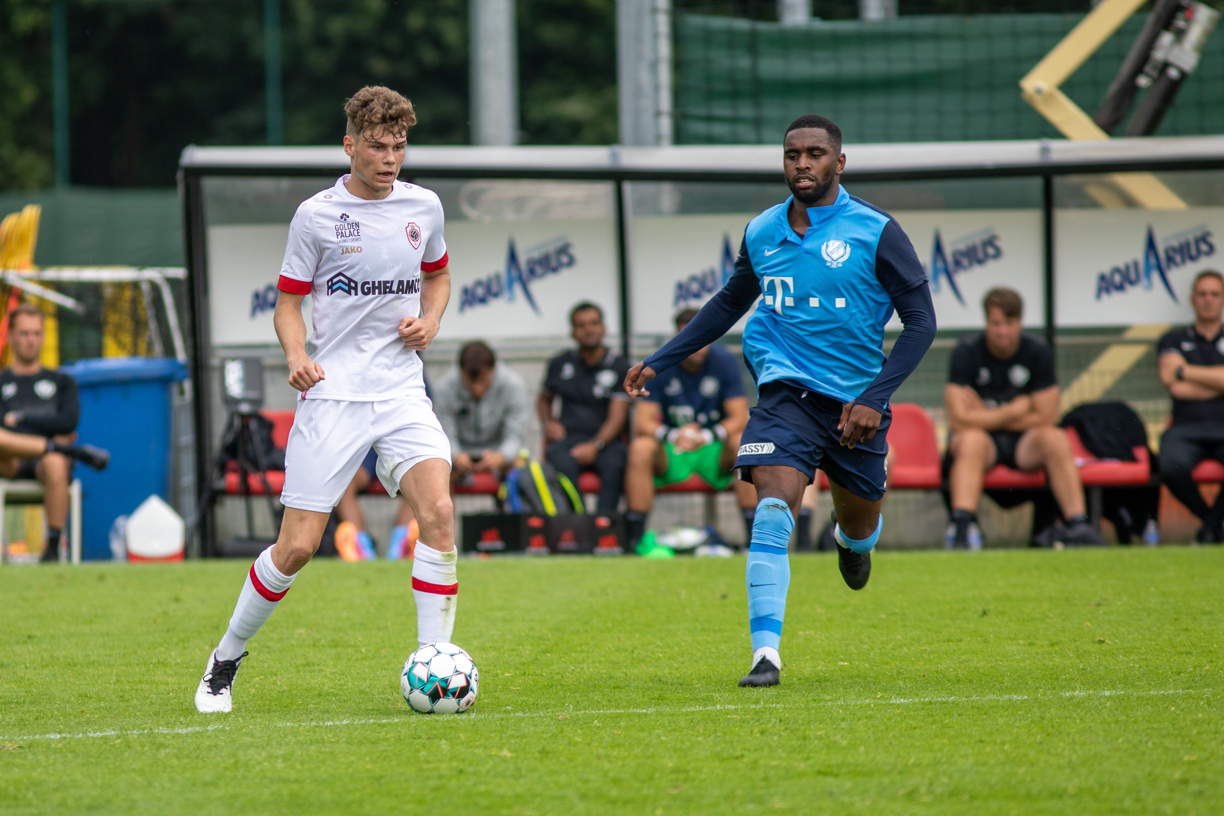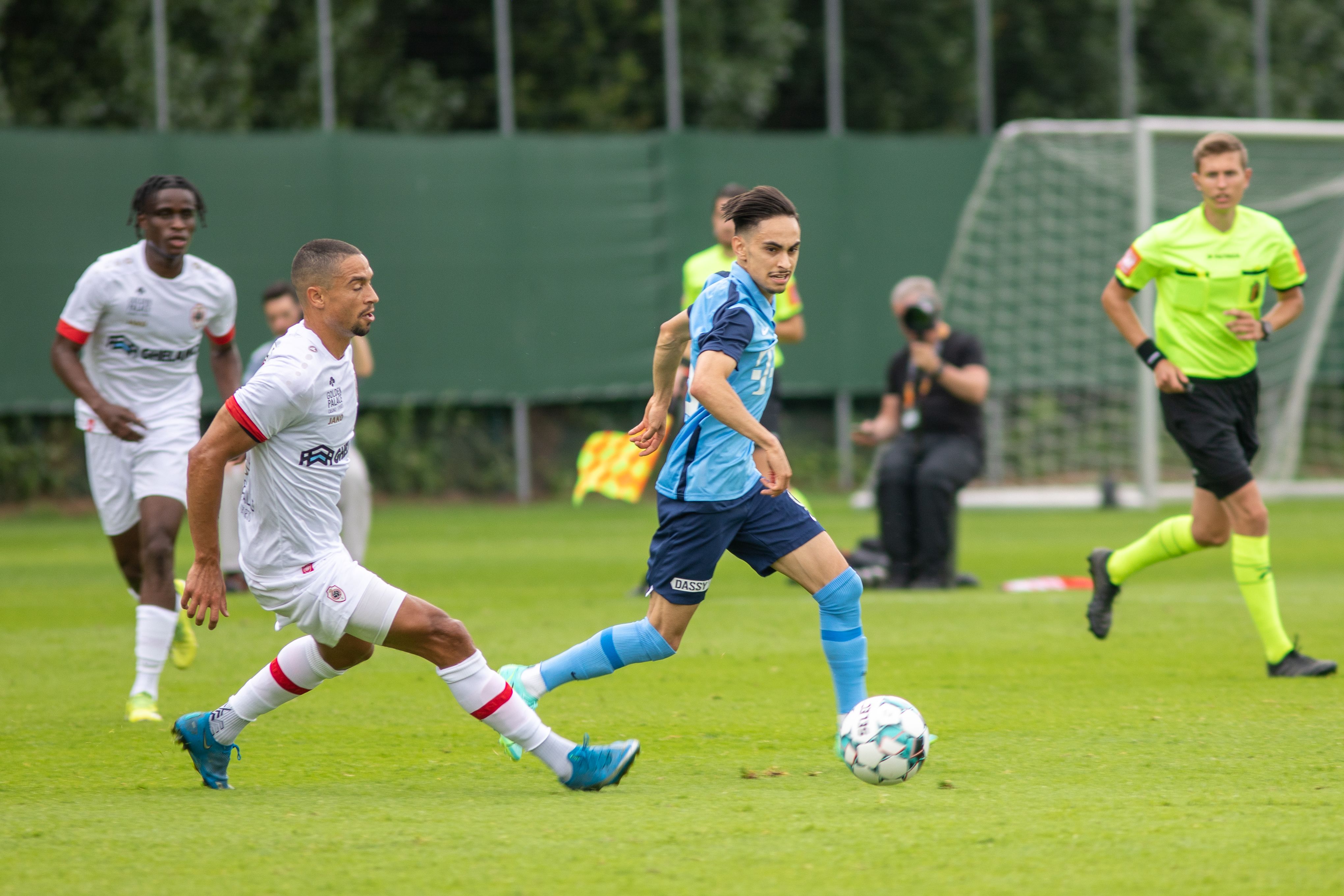 De schoten op de lat vertellen het verhaal van de eerste helft van de wedstrijd: FC Utrecht is de bovenliggende partij, Royal Antwerp FC verdedigt vooral. En toch staat na zestig minuten - er worden twee helften van een uur gespeeld, in plaats van de gebruikelijke drie kwartier, om zodoende alle spelers de wedstrijdminuten te kunnen laten maken die ze in deze fase van de voorbereiding goed kunnen gebruiken - er een 1-0 stand op het scorebord. Ritchie De Laet straft een slordigheidje in de Utrechtse defensie af en passeert Maarten Paes.