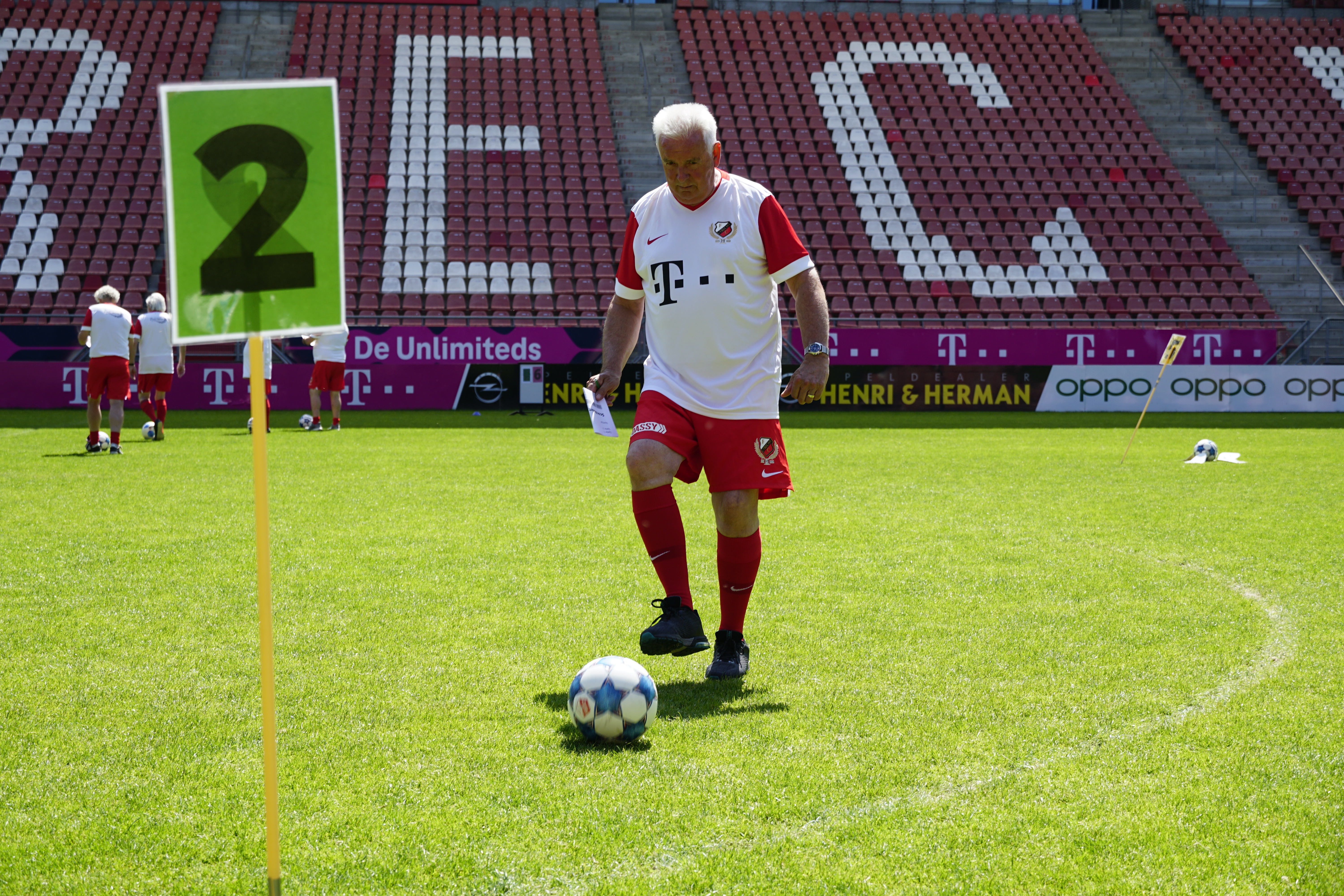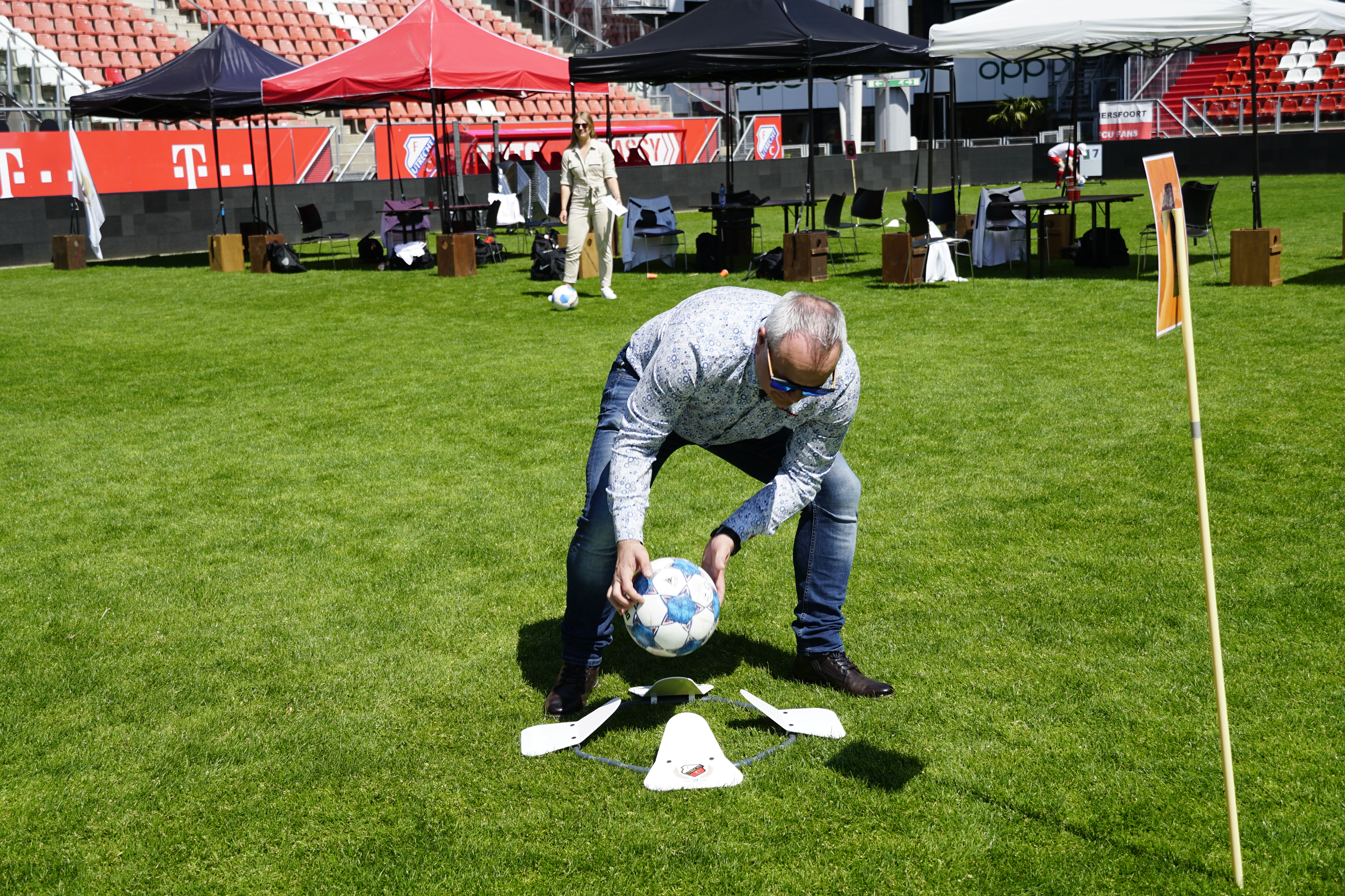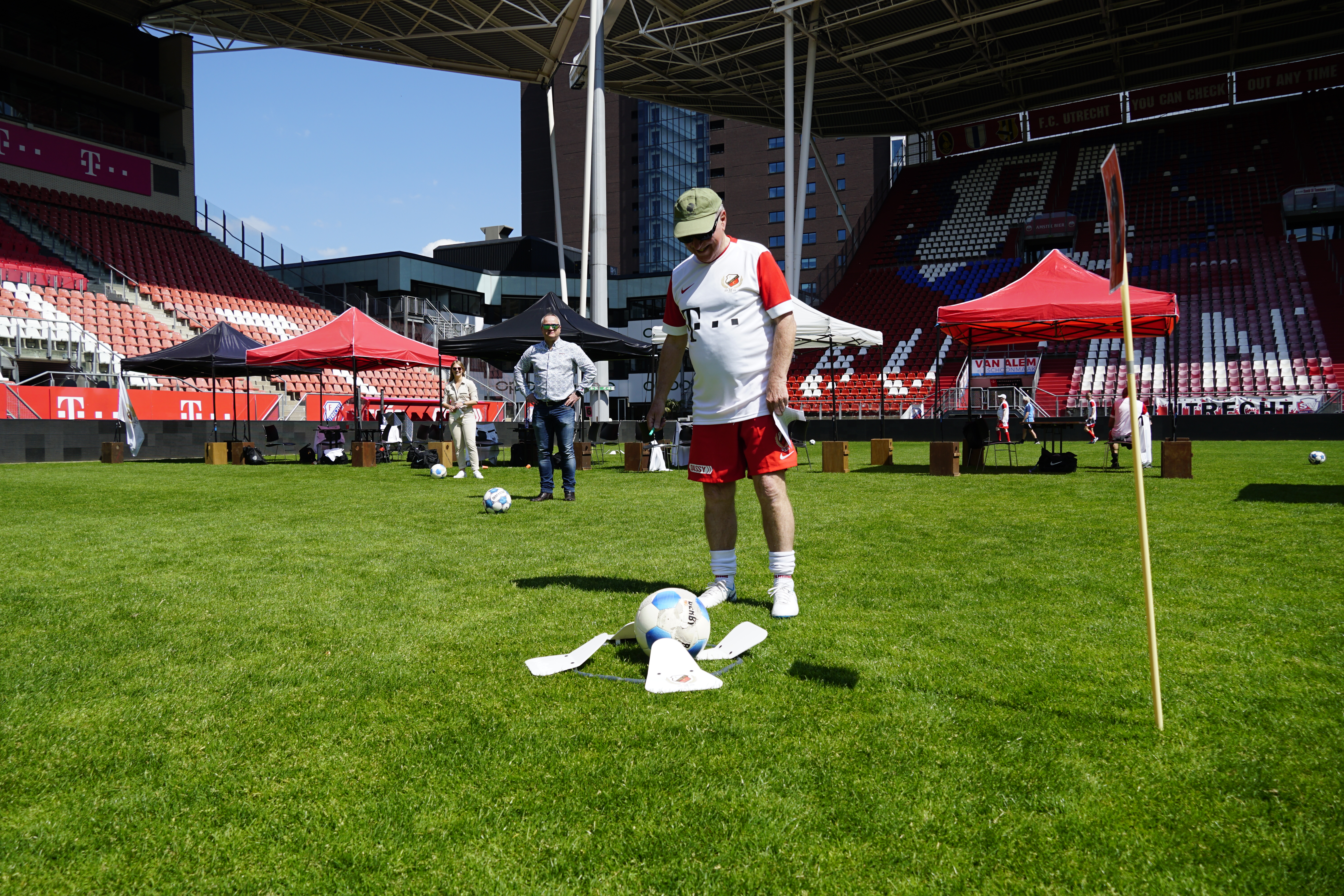 Afgelopen maandag was de allerlaatste veldactiviteit van het seizoen, met de FC Utrecht OldStars. Zij deden het FC Utrecht Footgolf parcours, bestaande uit negen holes, verspreid over het hele veld, de tribune en de spelerstunnel. Niet gemakkelijk dus, maar fanatiek ging iedereen de strijd aan om de titel Footgolf Kampioen. Toch was het nog erg spannend wie er met de titel vandoor ging. De OldStars hadden namelijk flinke concurrentie van de partners Vegro en John West. De individuele Footgolf Kampioen werd dan ook Henri van John West. Er werd gestreden in teams, dus hadden we ook een winnend tweetal. Met 26 punten sleepten Cor Vonk en Jan van den Wijngaard de titel Footgolf Kampioenen eveneens in de wacht.