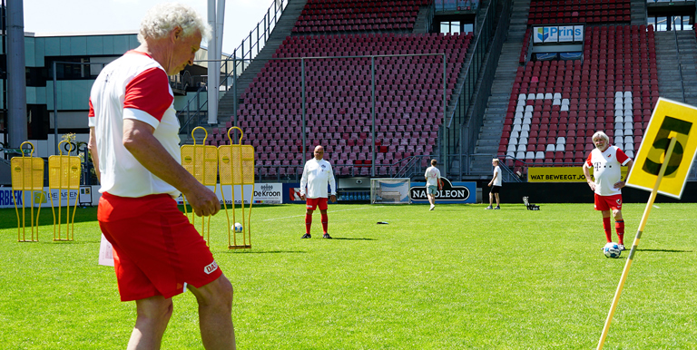 Afgelopen maandag was de allerlaatste veldactiviteit van het seizoen, met de FC Utrecht OldStars. Zij deden het FC Utrecht Footgolf parcours, bestaande uit negen holes, verspreid over het hele veld, de tribune en de spelerstunnel. Niet gemakkelijk dus, maar fanatiek ging iedereen de strijd aan om de titel Footgolf Kampioen. Toch was het nog erg spannend wie er met de titel vandoor ging. De OldStars hadden namelijk flinke concurrentie van de partners Vegro en John West. De individuele Footgolf Kampioen werd dan ook Henri van John West. Er werd gestreden in teams, dus hadden we ook een winnend tweetal. Met 26 punten sleepten Cor Vonk en Jan van den Wijngaard de titel Footgolf Kampioenen eveneens in de wacht.