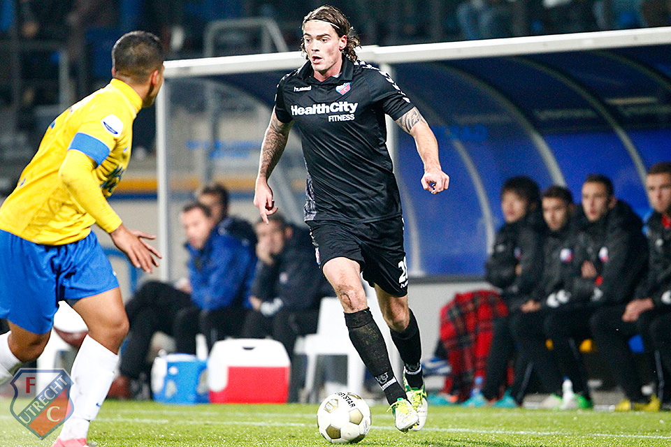 Verdediger Mark van der Maarel van FC Utrecht staat op scherp.