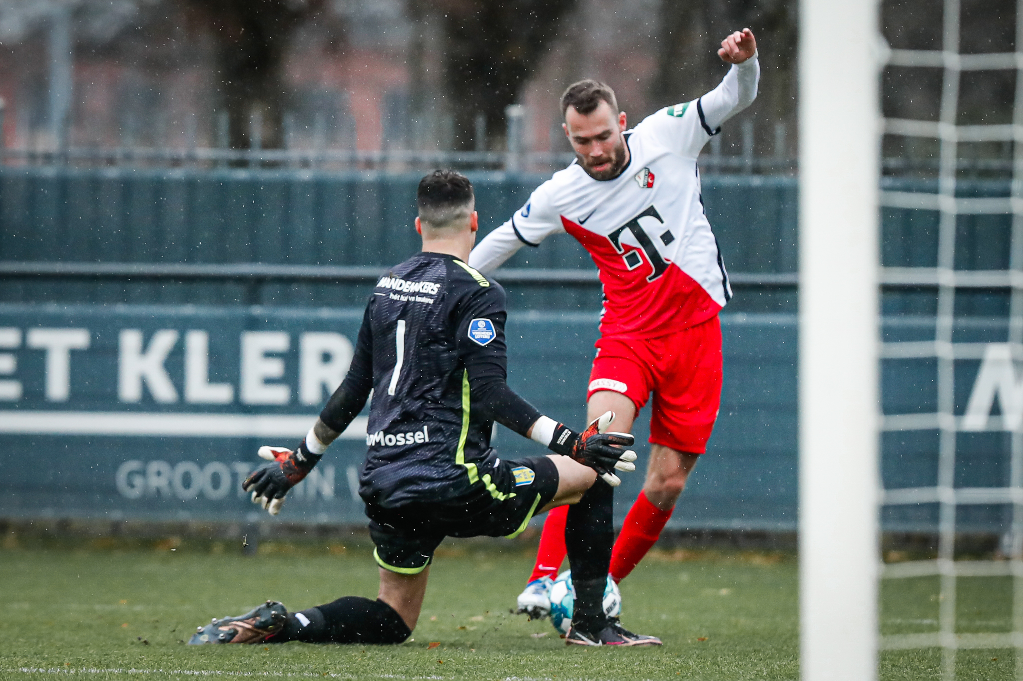 Dat doet overigens niet alleen Booth. Ook Sander van de Streek laat herhaaldelijk van zich spreken en met een snoeihard schot dat recht op de kruising afgaat doet ook Can Bozdogan een duit in het Utrechtse kansenzakje. De middenvelder ziet zijn poging gekeerd worden door Vaessen, wiens collega Fabian de Keijzer aan de overkant van het veld beduidend minder vaak op de proef wordt gesteld. De goalie van de Utrechters komt door pogingen van Pelle Clement en Lars Nieuwpoort niet in de problemen.