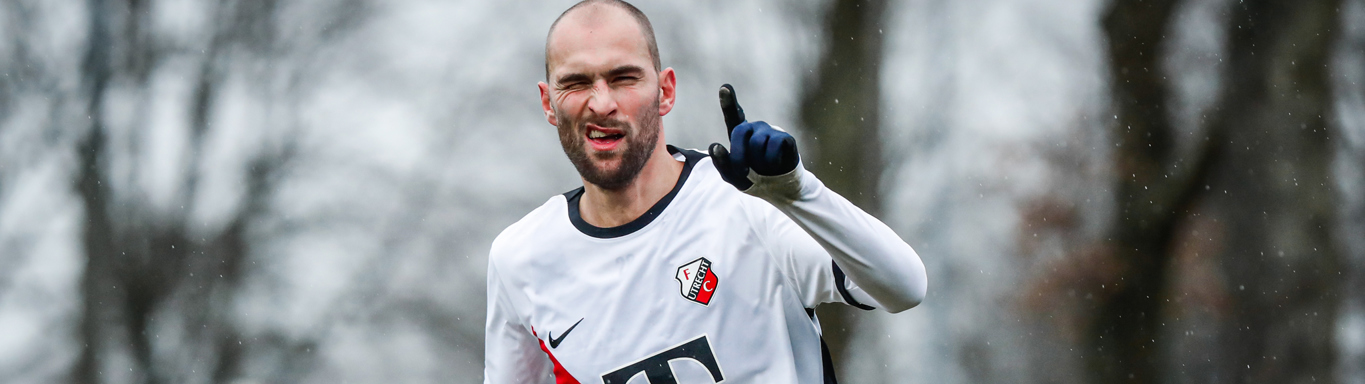 Dat doet overigens niet alleen Booth. Ook Sander van de Streek laat herhaaldelijk van zich spreken en met een snoeihard schot dat recht op de kruising afgaat doet ook Can Bozdogan een duit in het Utrechtse kansenzakje. De middenvelder ziet zijn poging gekeerd worden door Vaessen, wiens collega Fabian de Keijzer aan de overkant van het veld beduidend minder vaak op de proef wordt gesteld. De goalie van de Utrechters komt door pogingen van Pelle Clement en Lars Nieuwpoort niet in de problemen.