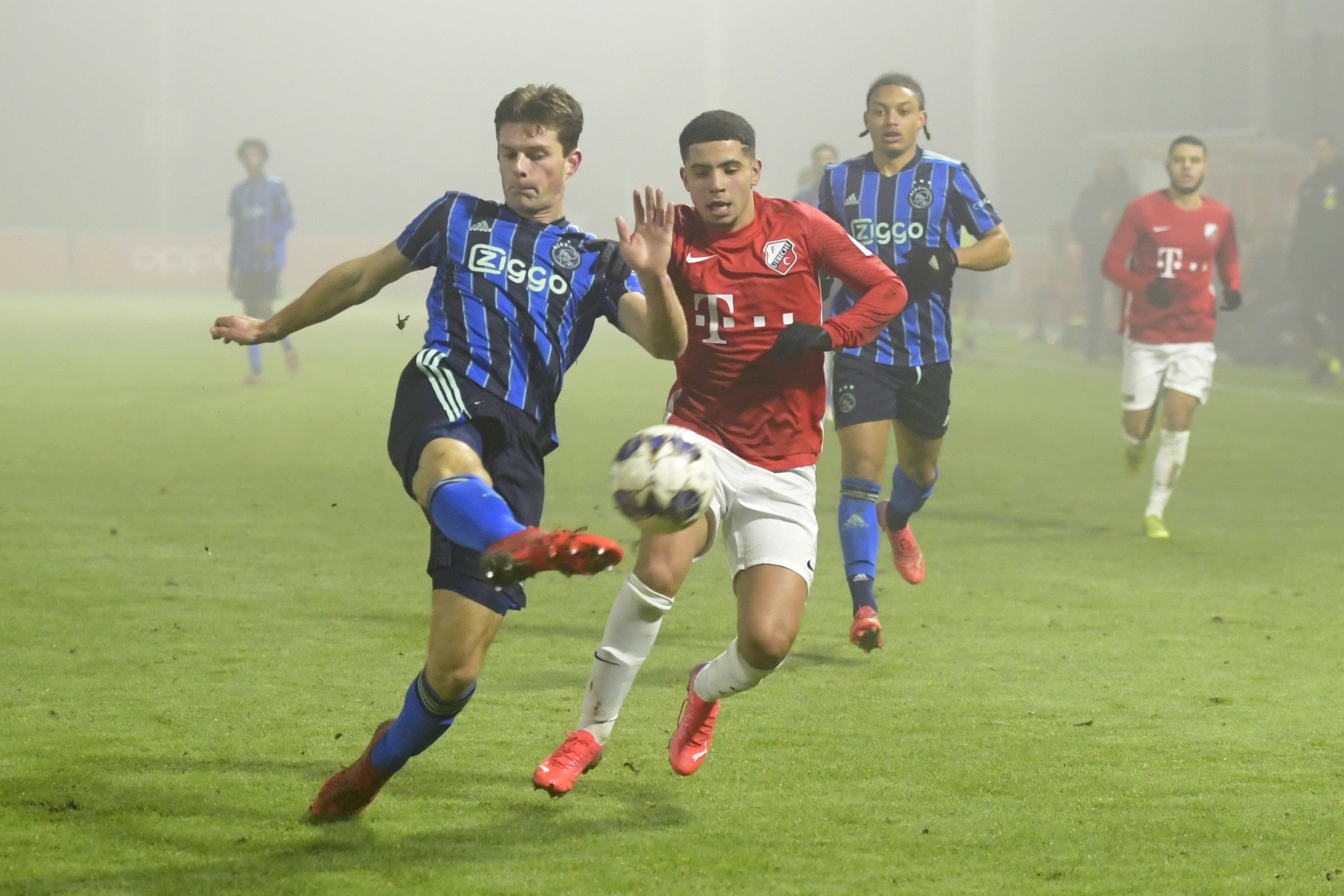 Op een mistig Sportcomplex Zoudenbalch is Jong FC Utrecht dan al dik 75 speelminuten op jacht naar een gelijkmaker. Remco Balk en Raymond Huizing doen voor de break al pogingen die te scoren, evenals Ayman Sellouf.