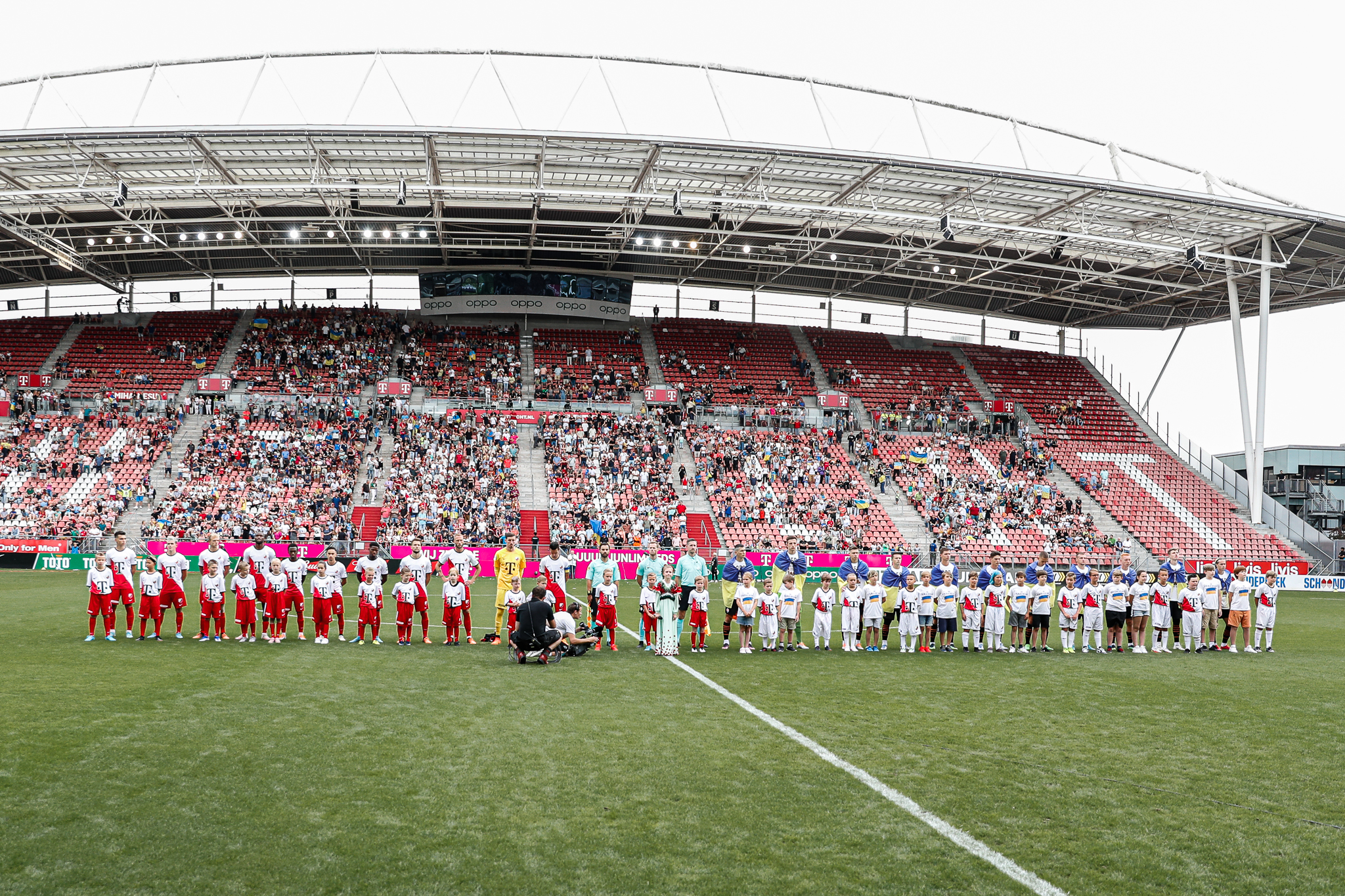 Het Oekraïense volkslied gezongen door Veronika Morska en een indrukwekkende minuut stilte voorafgaand aan de benefietwedstrijd tussen FC Utrecht – Shakhtar Donetsk staan symbool voor een middag vanuit het hart in Stadion Galgenwaard. Deze wedstrijd wordt aangegrepen om zoveel mogelijk geld op te halen voor Oekraïense oorlogsslachtoffers.