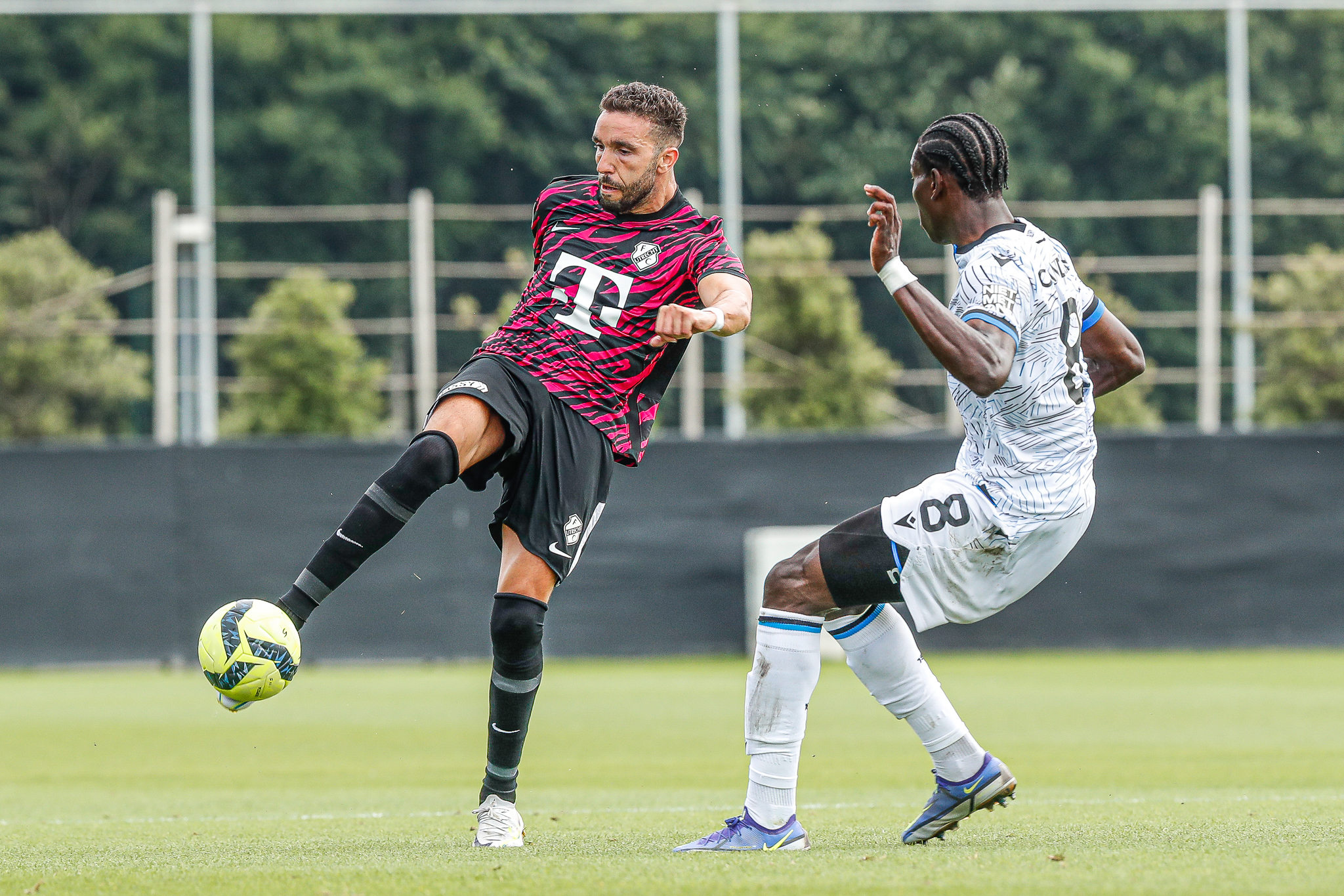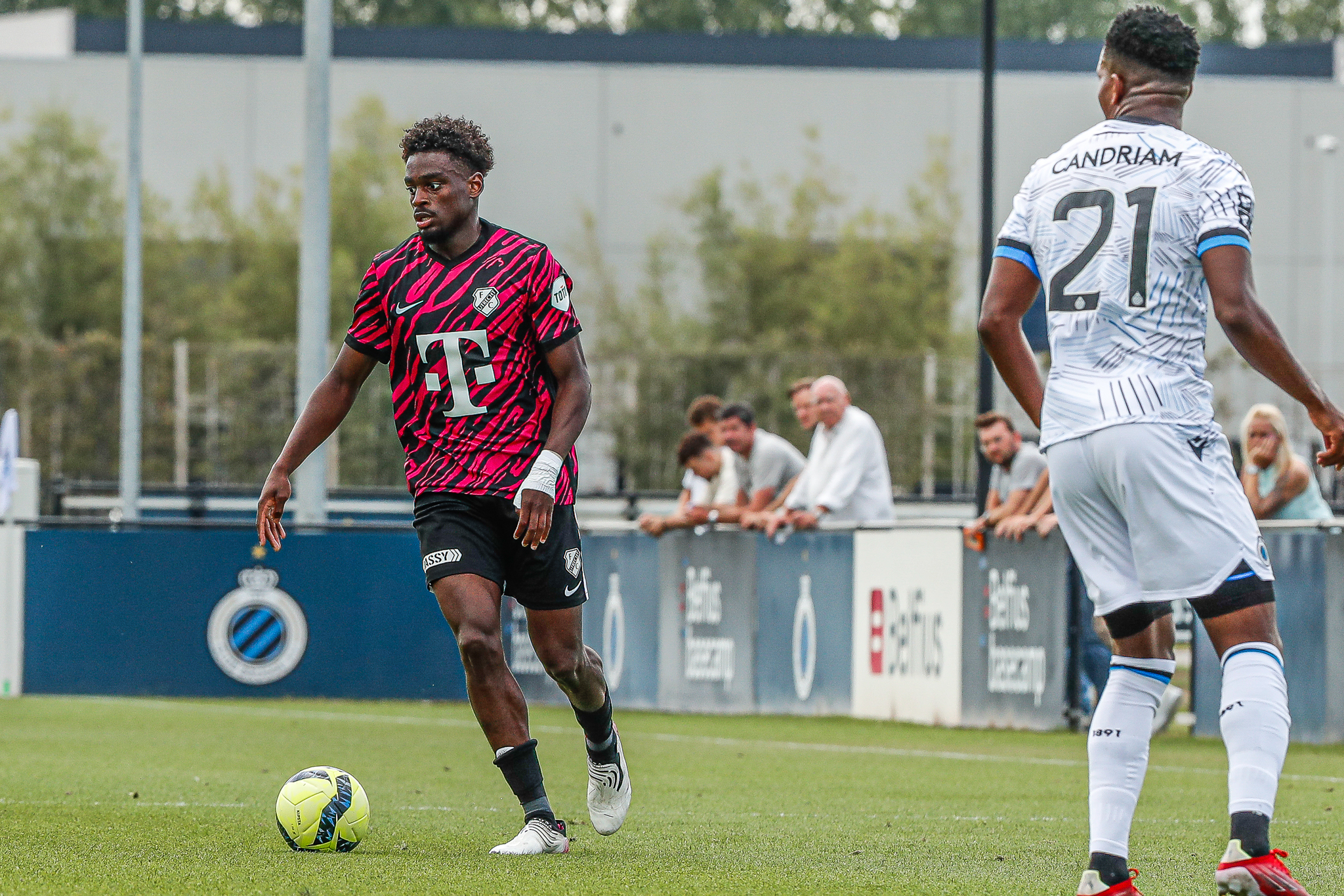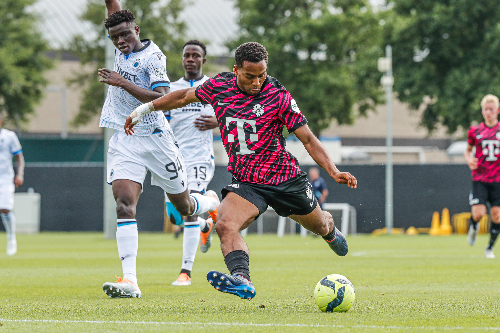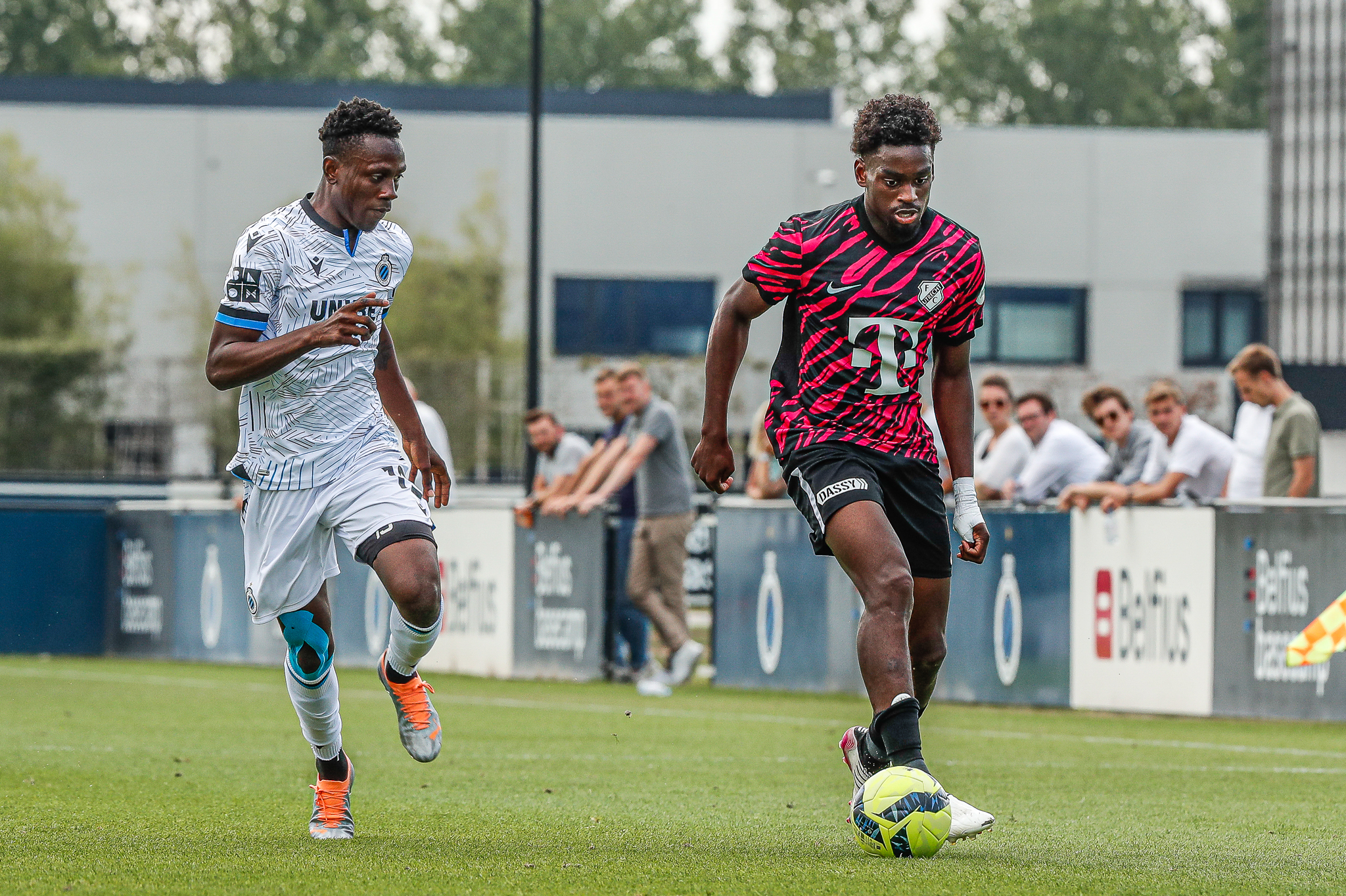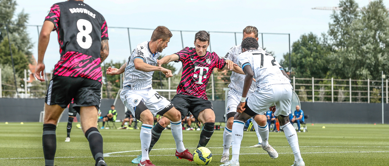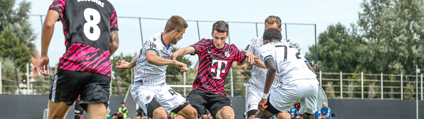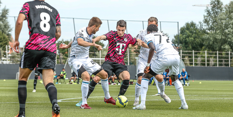 Binnen een kwartier komt Club Brugge op Belfius Basecamp aan de leiding. De equipe uit Brugge, die aanstaande zondag al aantreedt in de strijd om de Belgische Super Cup, komt tegen FC Utrecht via nota bene een Nederlander aan de leiding. Noa Lang schiet raak nadat hij van Antonio Nusa de bal ontvangt: 1-0. Ook de tweede treffer van de Belgen is van Nederlandse makelij. Na een voorzet van de Nederlandse Club Brugge-vleugelspeler Björn Meijer werkt Nick Viergever de bal achter zijn eigen sluitpost Vasilis Barkas (2-0).