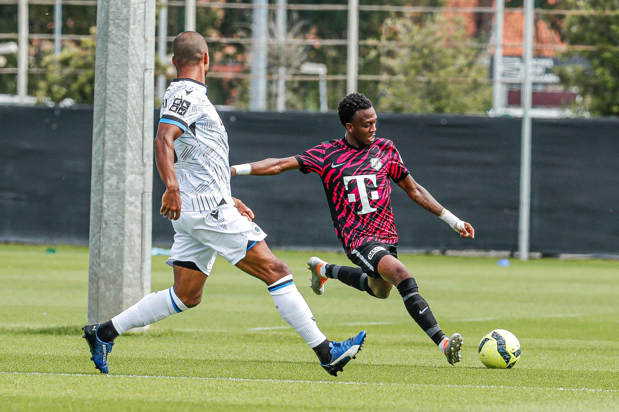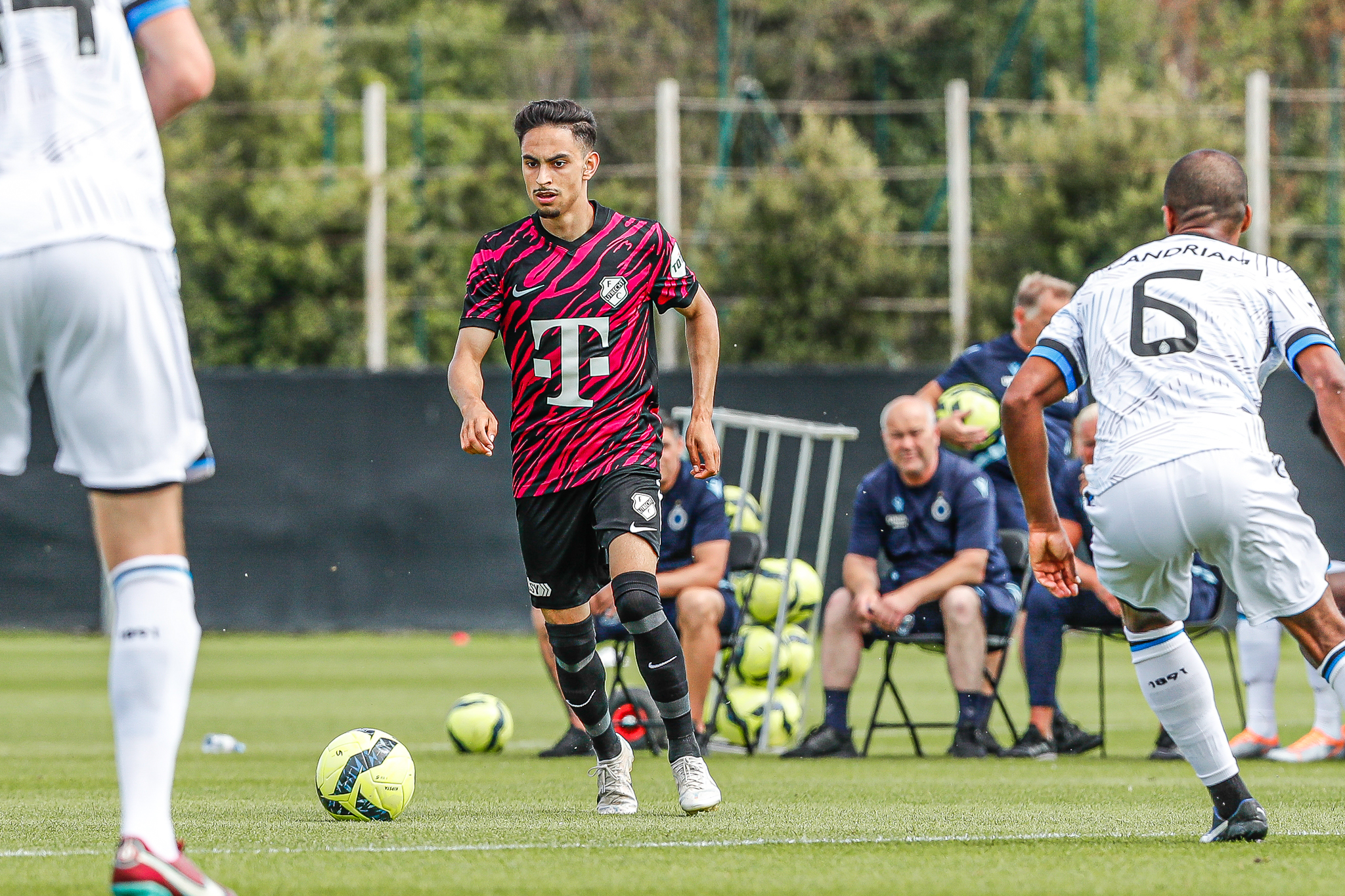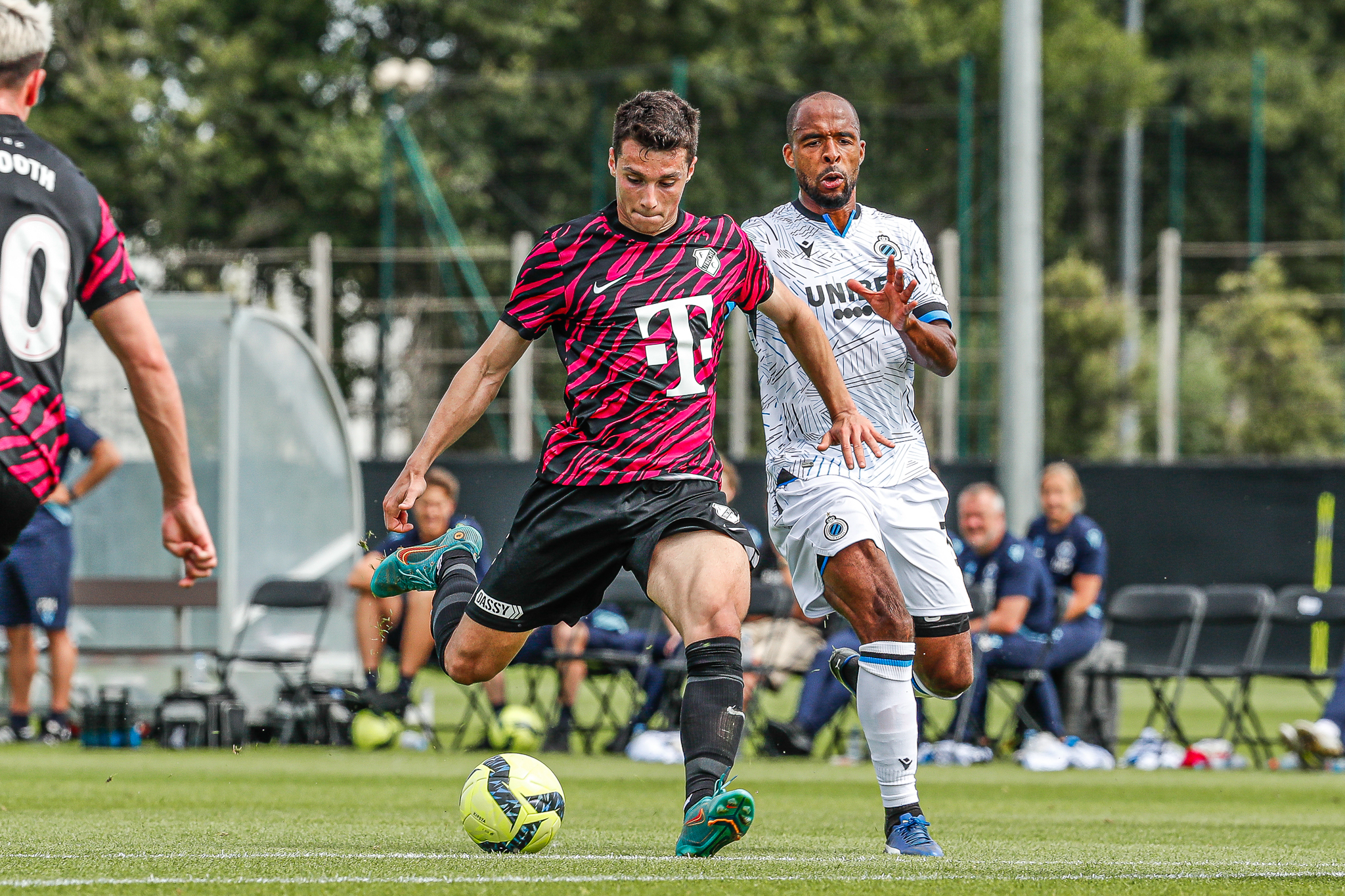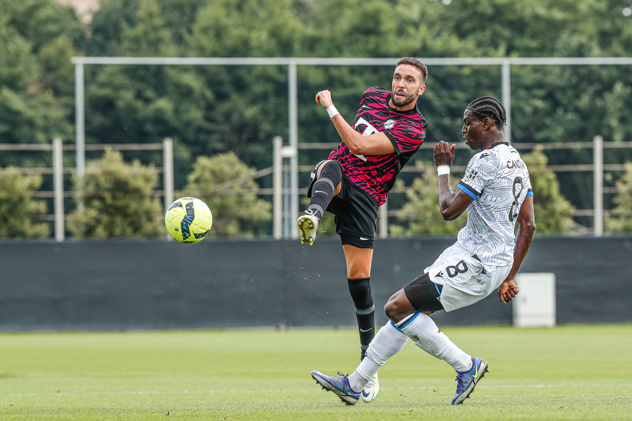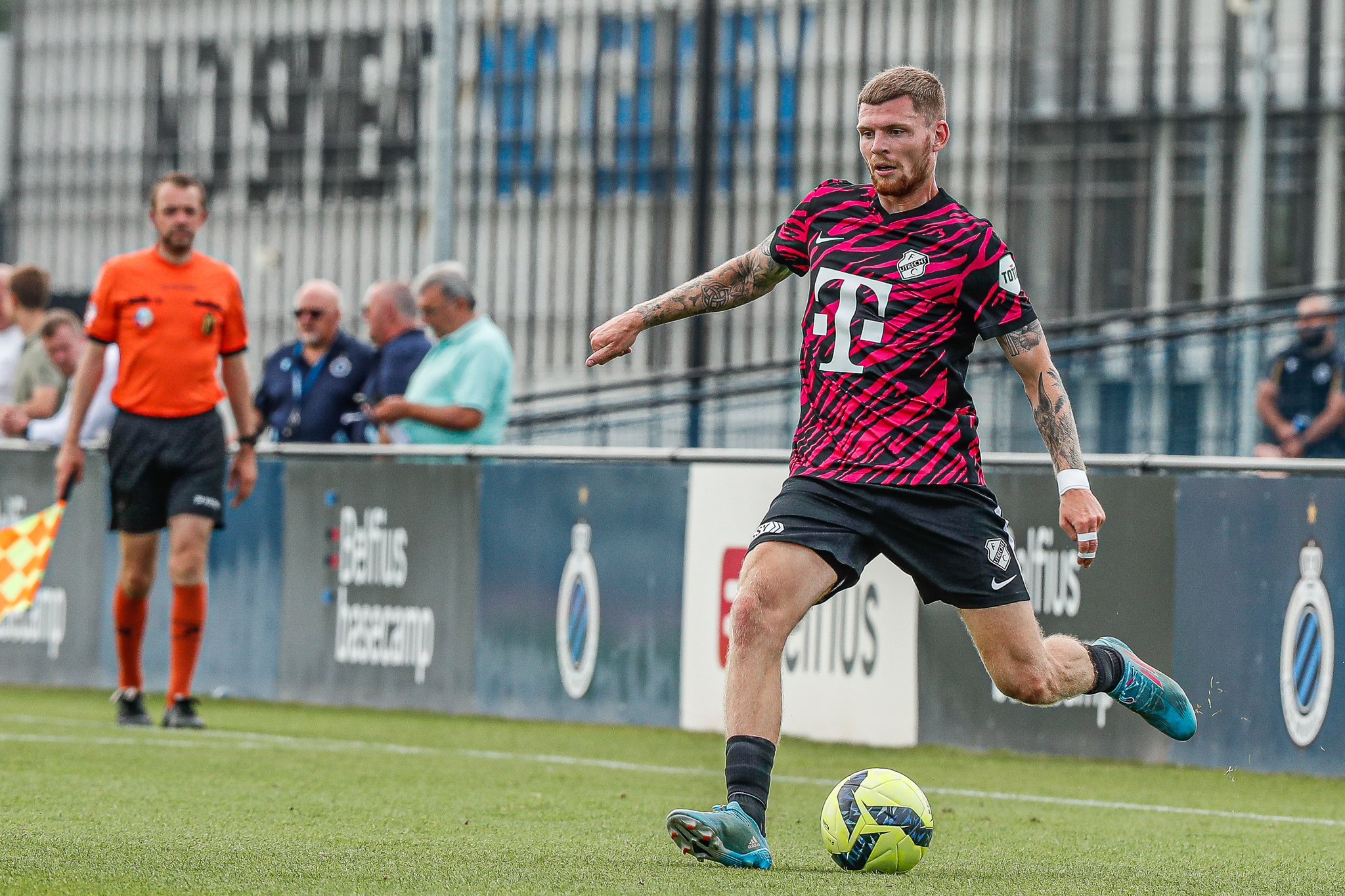 Binnen een kwartier komt Club Brugge op Belfius Basecamp aan de leiding. De equipe uit Brugge, die aanstaande zondag al aantreedt in de strijd om de Belgische Super Cup, komt tegen FC Utrecht via nota bene een Nederlander aan de leiding. Noa Lang schiet raak nadat hij van Antonio Nusa de bal ontvangt: 1-0. Ook de tweede treffer van de Belgen is van Nederlandse makelij. Na een voorzet van de Nederlandse Club Brugge-vleugelspeler Björn Meijer werkt Nick Viergever de bal achter zijn eigen sluitpost Vasilis Barkas (2-0).
