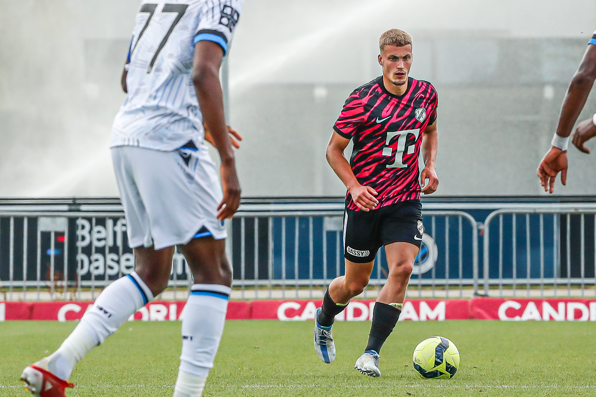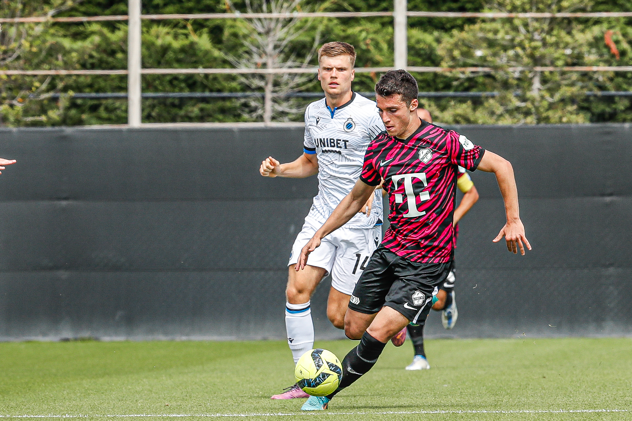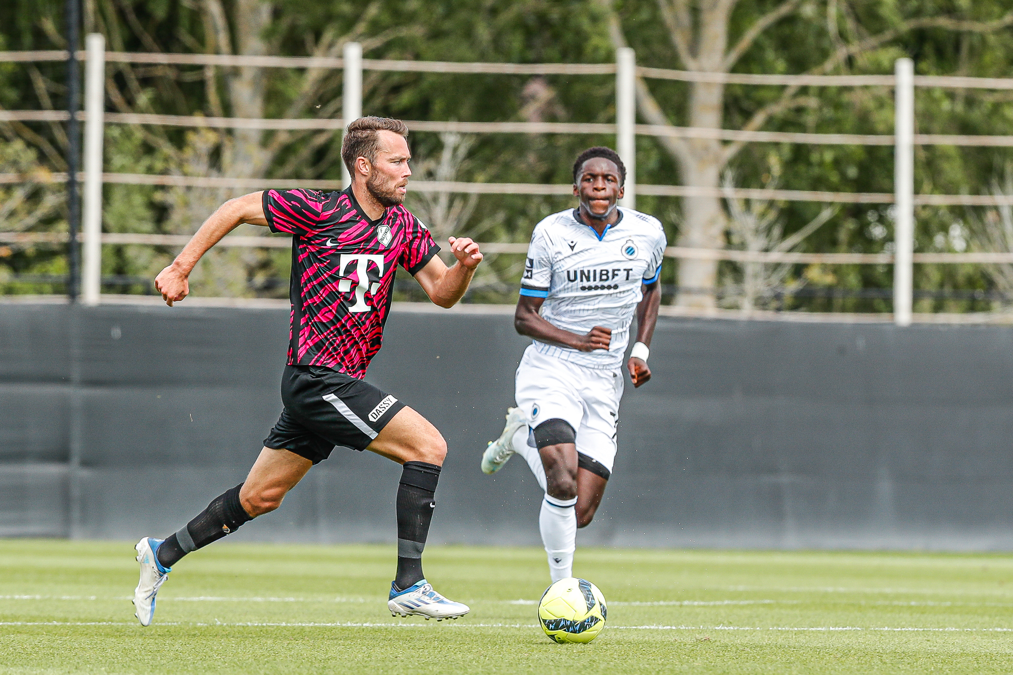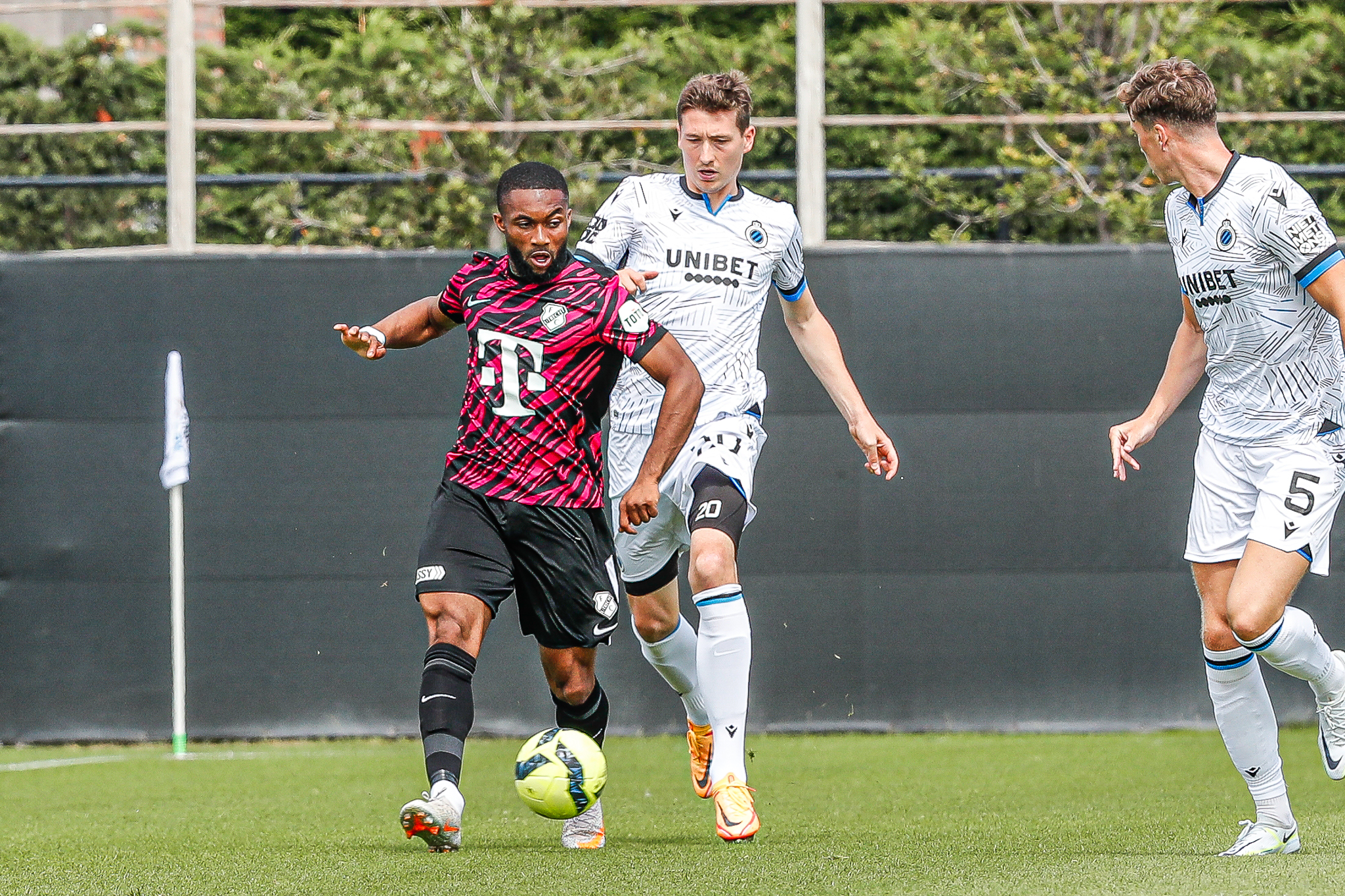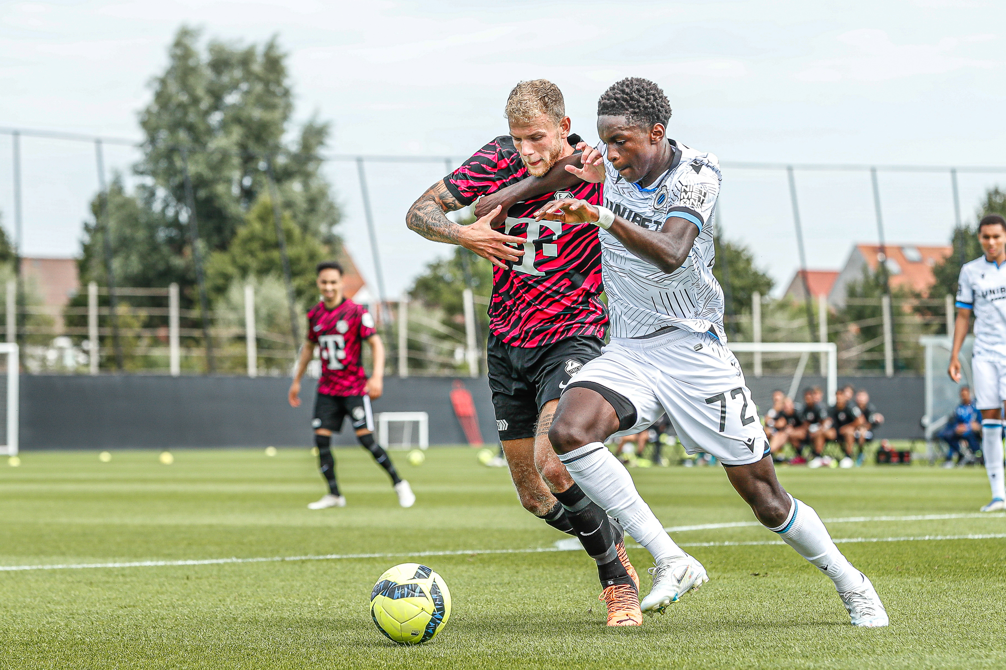 Binnen een kwartier komt Club Brugge op Belfius Basecamp aan de leiding. De equipe uit Brugge, die aanstaande zondag al aantreedt in de strijd om de Belgische Super Cup, komt tegen FC Utrecht via nota bene een Nederlander aan de leiding. Noa Lang schiet raak nadat hij van Antonio Nusa de bal ontvangt: 1-0. Ook de tweede treffer van de Belgen is van Nederlandse makelij. Na een voorzet van de Nederlandse Club Brugge-vleugelspeler Björn Meijer werkt Nick Viergever de bal achter zijn eigen sluitpost Vasilis Barkas (2-0).