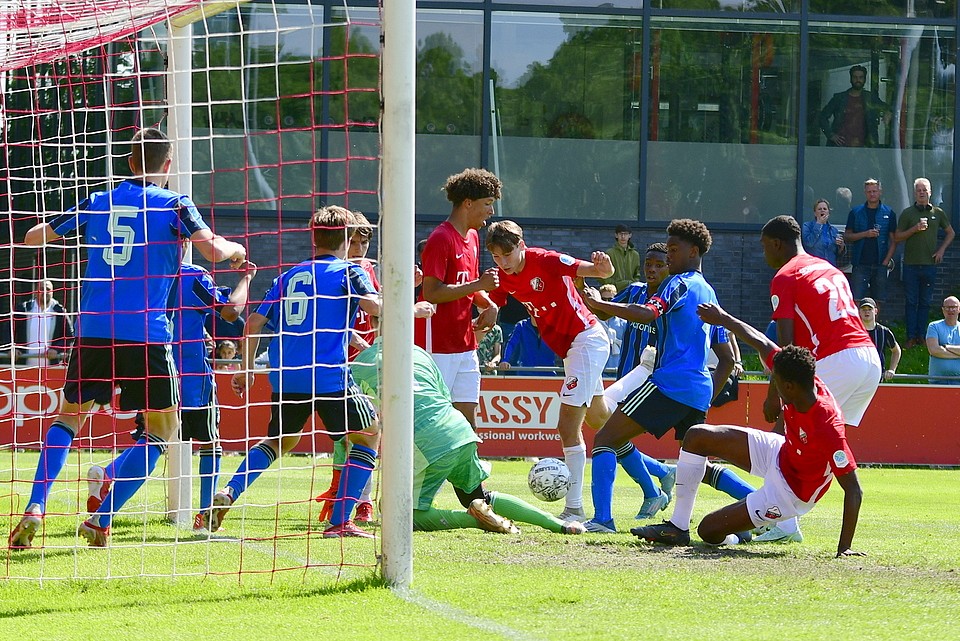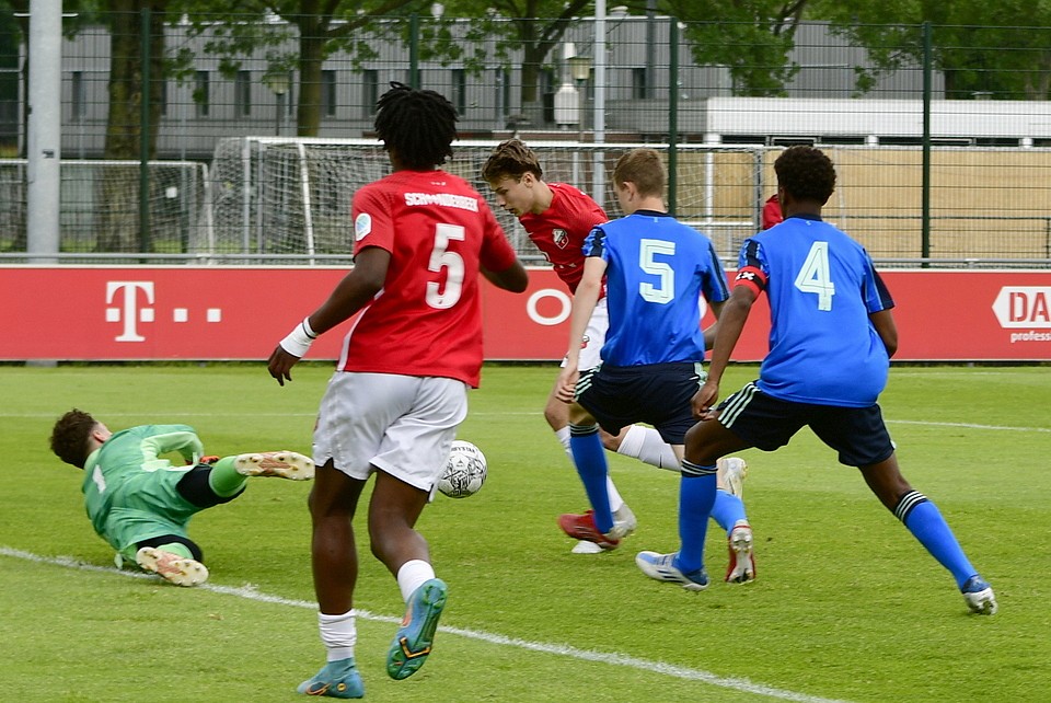 04 juni 2022Ajax leek in de allerlaatste minuut de wedstrijd te beslissen maar de keeper van de thuisclub stak daar een stokje voor. Via een scrimmage schoot hij de gelijkmaker binnen. Vlak voor het eind van de tweede verlenging was het de spits van FC Utrecht O17 die de 3-2 prachtig binnen kopte! De beker blijft in Utrecht!