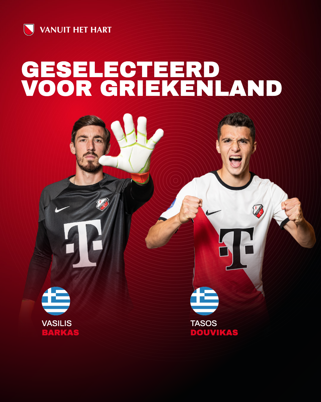 Barkas heeft op dit moment dertien interlands op de teller staan. De goalie miste dit seizoen nog geen enkele speelminuut in de hoofdmacht van FC Utrecht. Aanvaller Douvikas kwam eveneens dertien keer in actie voor Ethniki Omada en is op dit moment clubtopscorer van de Utrechtse FC.