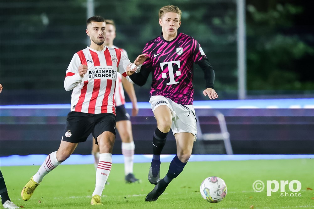 Als een duveltje uit een doosje spurt hij weg bij de verdedigers van Jong FC Utrecht: Jeremy Antonisse. De aanvaller, die halverwege de tweede helft in de ploeg wordt gebracht bij Jong PSV, stuit na een knappe actie op Calvin Raatsie. De goalie zorgt er met zijn sterke save op dat moment voor dat de Utrechtse talenten hun 0-1 voorsprong vasthouden.