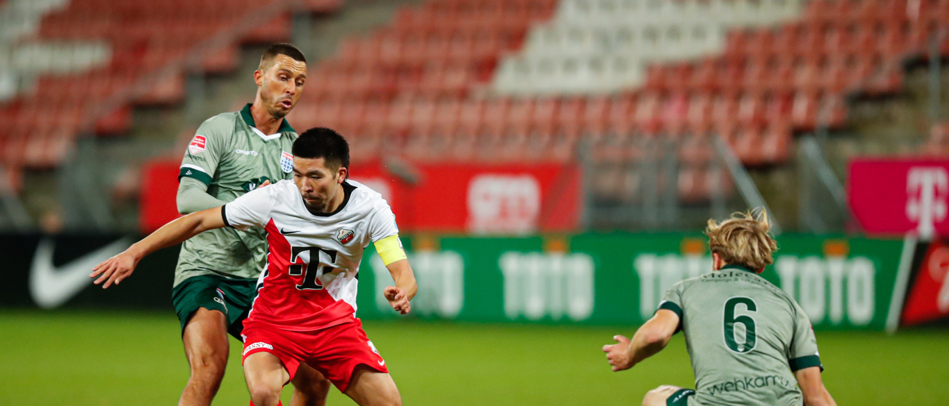 Yuya Ikeshita krijgt de bal in kansrijke positie op een meter of twintig afstand van het doel van PEC Zwolle. Hij twijfelt niet en test doelman Jasper Schendelaar van de Overijsselse ploeg maar eens. In een fase waarin de Domstedelingen kansen hebben op de openingstreffer valt ook dit afstandsschot net niet goed. Schendelaar kan redding brengen en het blijft 0-0.