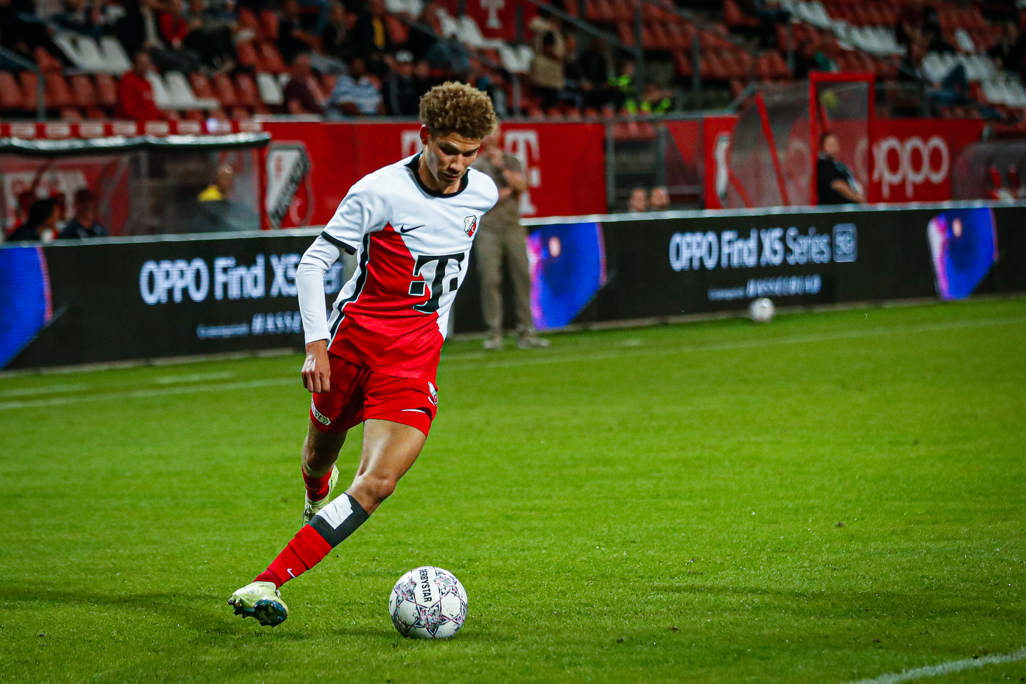 Amper vijf minuten staat hij binnen de lijnen, Derensili Sanches Fernandes, of de aanvaller is al trefzeker. De vervanger van Daishawn Redan gaat af op ADO Den Haag-doelman Hugo Wentges en kiest voor een schot in de verre hoek. Wat volgt is een afgemeten bal, onbereikbaar voor de Haagse goalie: 1-0 voor Jong FC Utrecht.