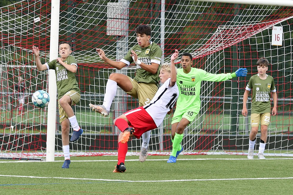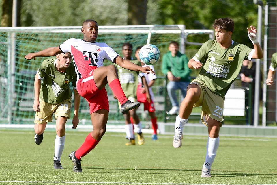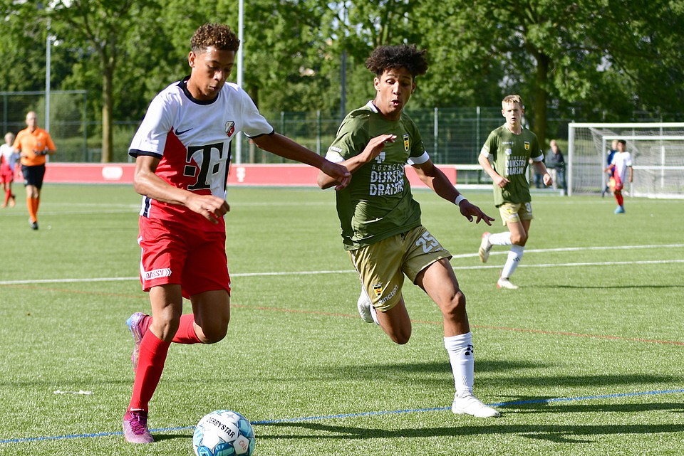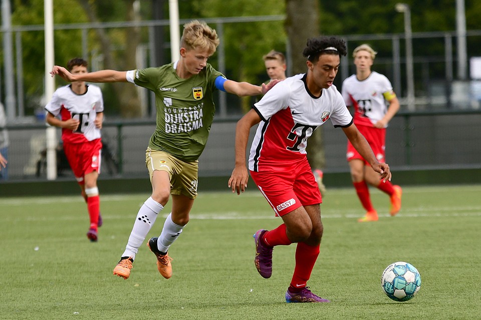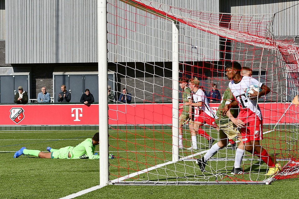 Na twee overwinningen op rij kreeg FC Utrecht O16 dit weekeinde een domper te verwerken. Thuis tegen het nog puntloze sc Cambuur werd een 2-3 nederlaag geleden. In de eerste helft hadden de Domstedelingen de grootste moeite met de Friese tegenstander. FC Utrecht O16 kreeg maar geen druk op de opbouw van de tegenstander. Met name op het middenveld was de aansluiting onvoldoende. Desondanks kreeg FC Utrecht O16 aanvallend de nodige mogelijkheden, want met name op links kwam de ploeg regelmatig door. In de afwerking was men echter slordig en vaak te gehaast. Cambuur ging wat zuiniger om met de kansen die zij kregen en liet uit een lange bal de 0-1 aantekenen. Hetgeen ook de ruststand was. Na rust was FC Utrecht O16 aanvallend de betere ploeg en schiep zich genoeg mogelijkheden om de wedstrijd weer naar zich toe te trekken. De Friese tegenstander bleef echter dreigend via de omschakeling waarbij de Utrechtse verdediging zich te vaak het kaas van het brood liet eten. En als je zelf niet scoort, dan doet de tegenstander dat wel, aldus een oude voetbalwet. Aan de Utrechtse linkerkant werd niet scherp verdedigd en de voorzet van rechts kon door de Friese linksbuiten vrij worden ingeschoten voor de 0-2. Het siert de Domstedelingen dat zij bleven knokken voor een goed resultaat. Dat resulteerde even later binnen een korte tijdsperiode in de gelijkmaker. Eerst was er Matyas Havelka met de aansluitingstreffer en twee minuten later rondde spits Remiyan Muthuccumaru een voorzet van Björn Menzo af voor de 2-2. Vlak voor tijd had Djalil El Makrinin zelfs met iets meer doorzettingsvermogen voor 3-2 moeten zorgen. Helaas viel de winnende treffer aan de andere kant en opnieuw zag de linker verdedigingsflank van de Utrechters er niet goed uit. De voor de zieke trainer/coach Jasper Somsen ingevallen Robin Pronk was na afloop in de kleedkamer helder in zijn analyse: “aanvallend hebben we het prima gedaan, zat mogelijkheden gecreëerd, wellicht iets te weinig benut, maar verdedigend zagen we, en dat geldt voor het hele team, er de gehele wedstrijd niet goed uit.”