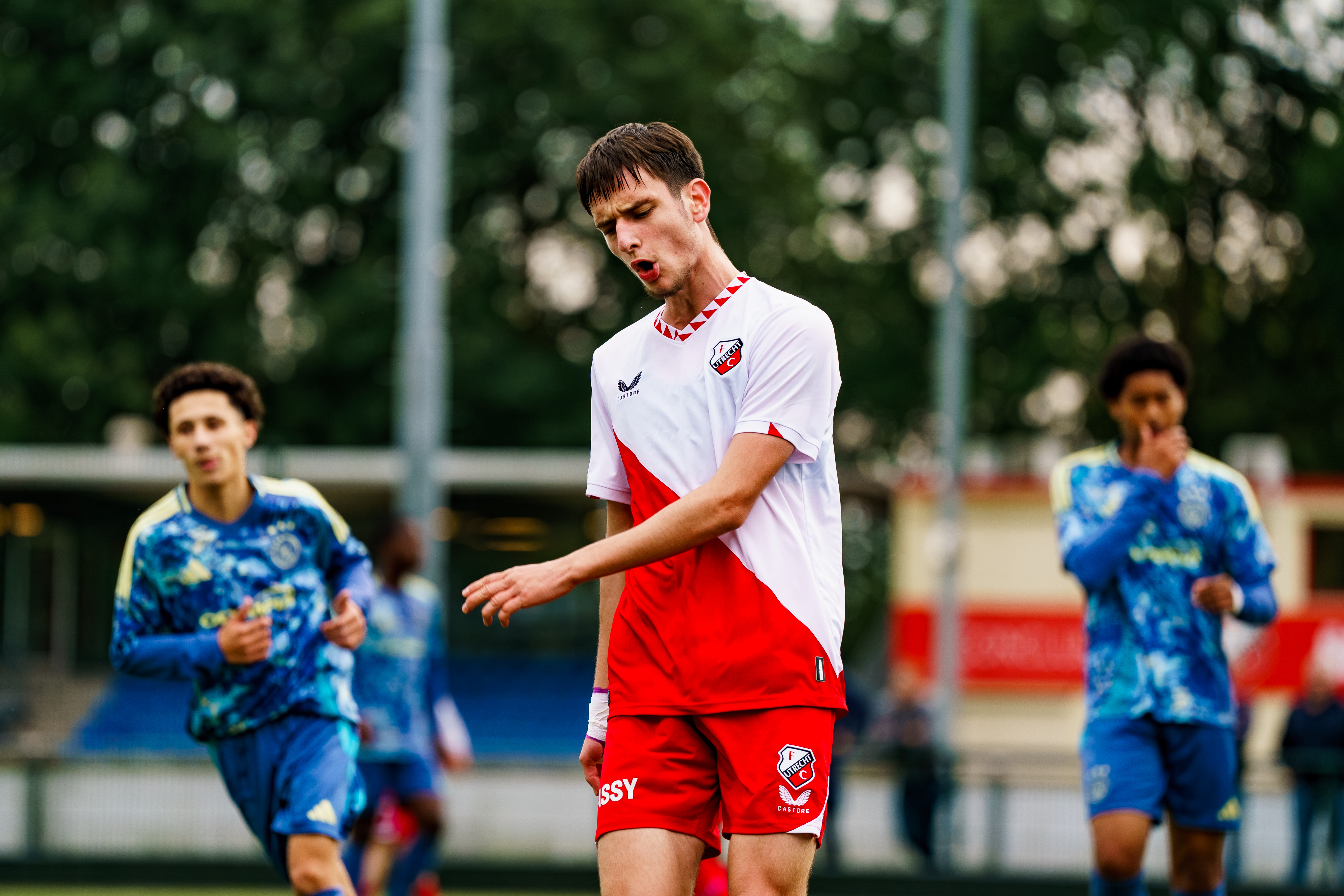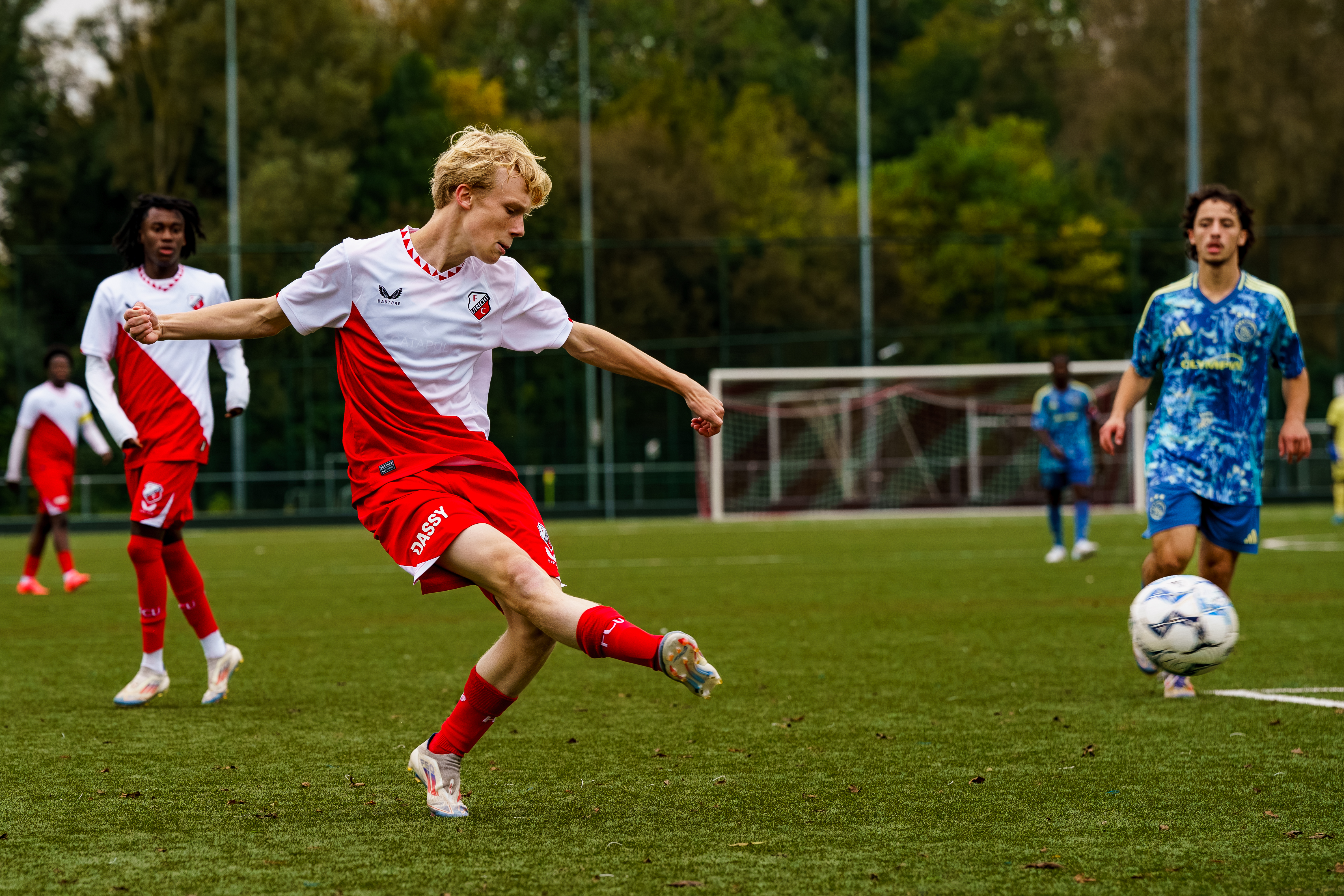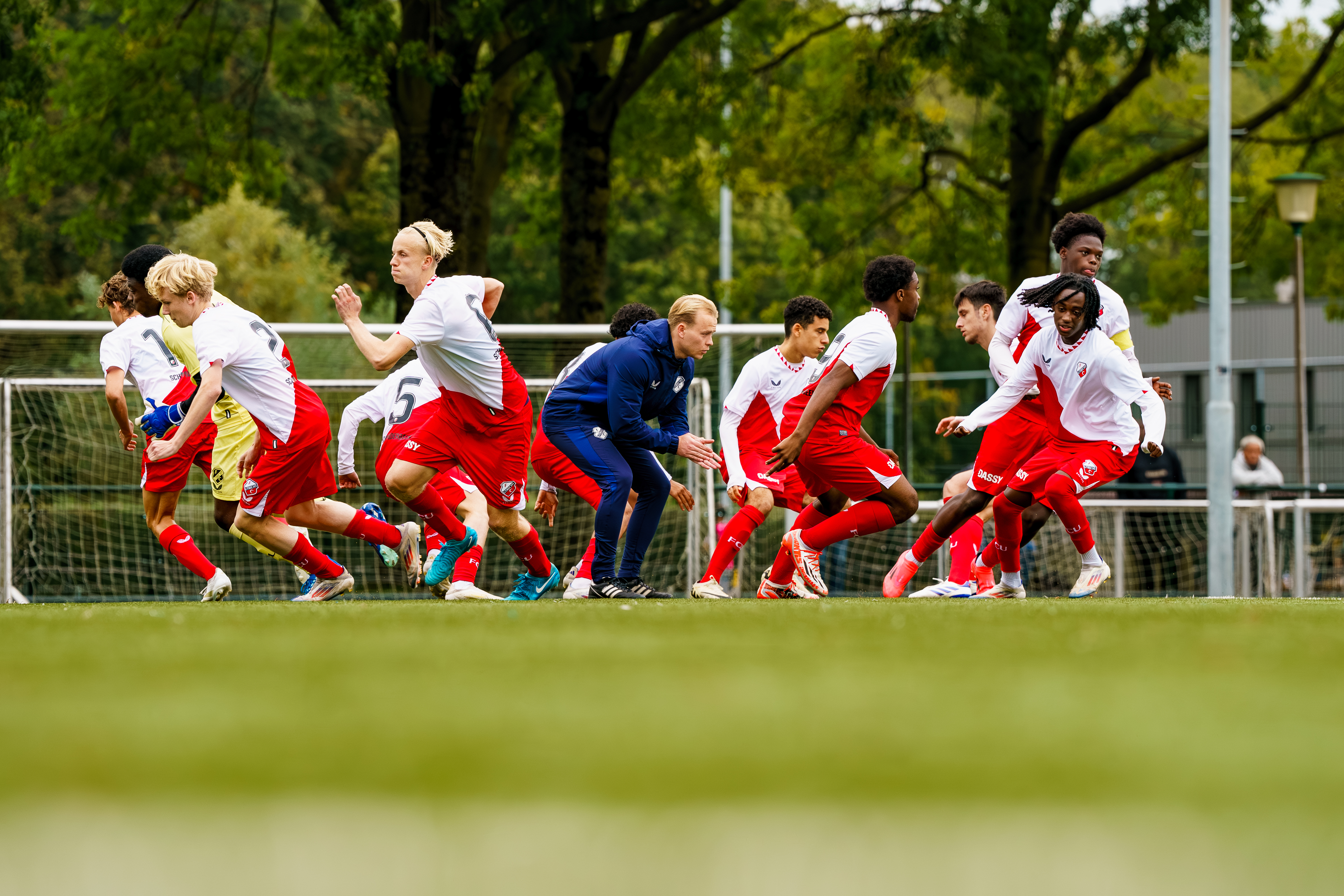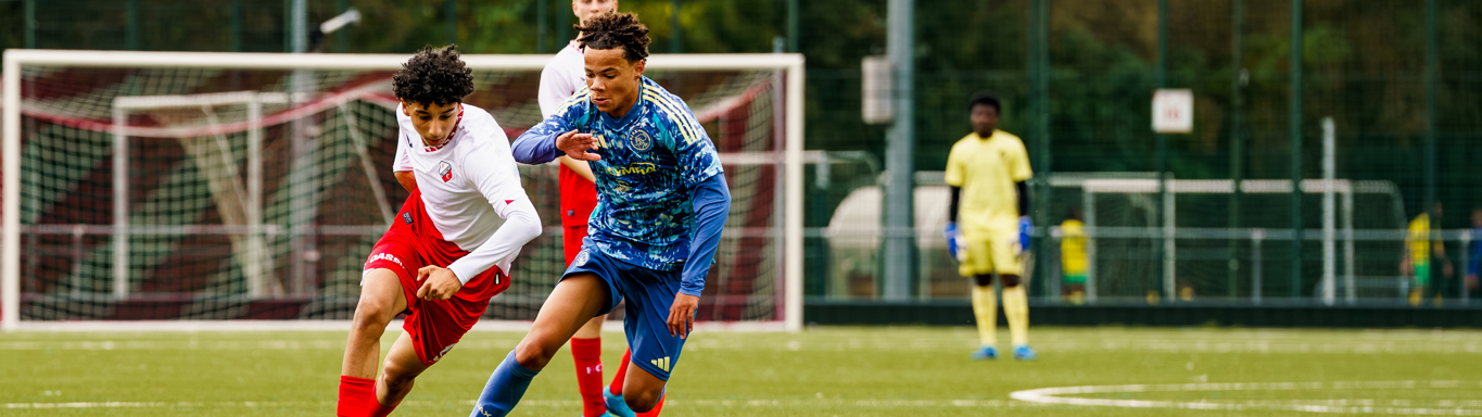 Zaterdagmiddag om 15.00 uur klinkt het fluitsignaal van scheidsrechter Tony van Waveren voor de wedstrijd FC Utrecht O17 tegen Ajax O17.