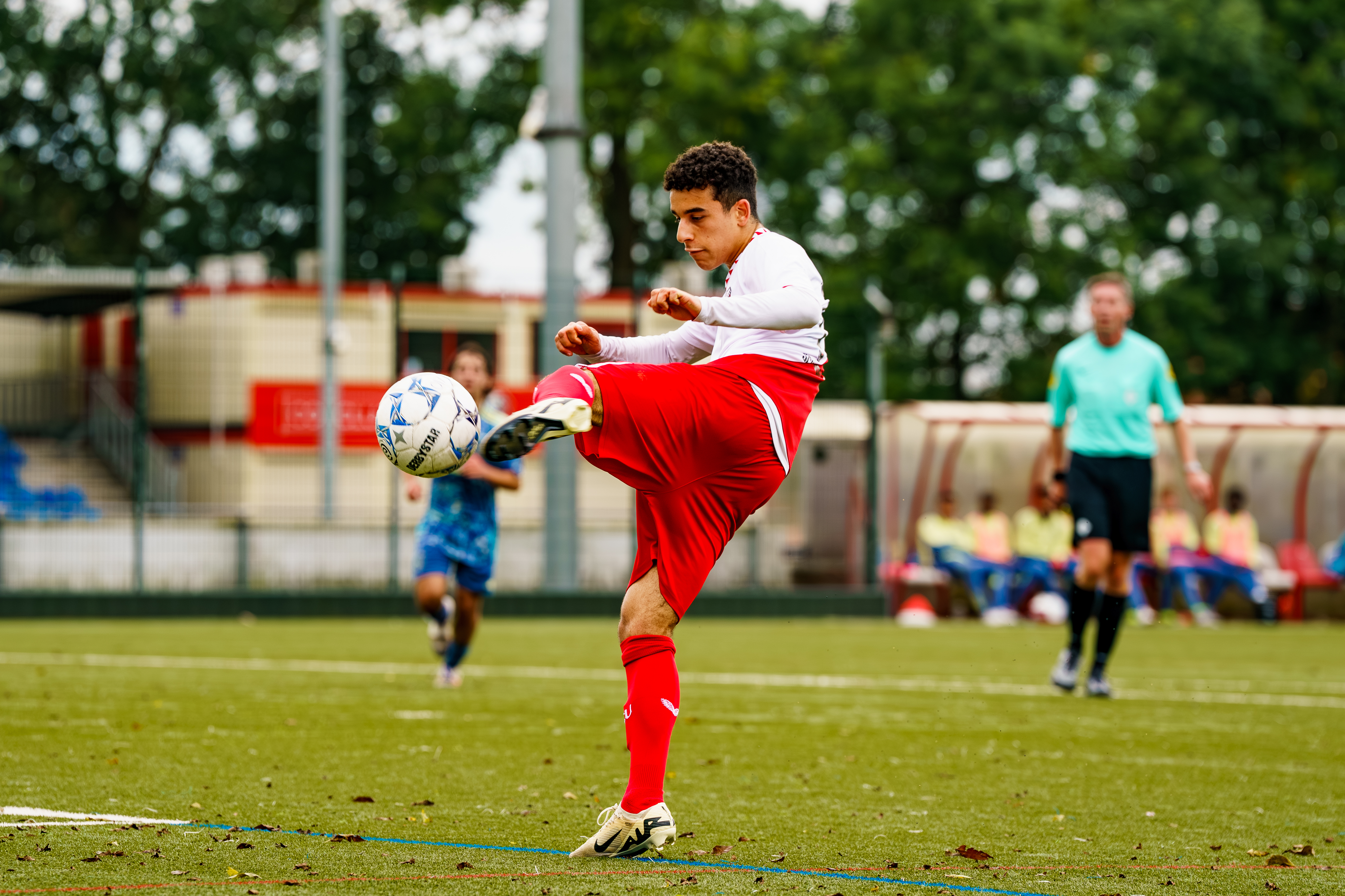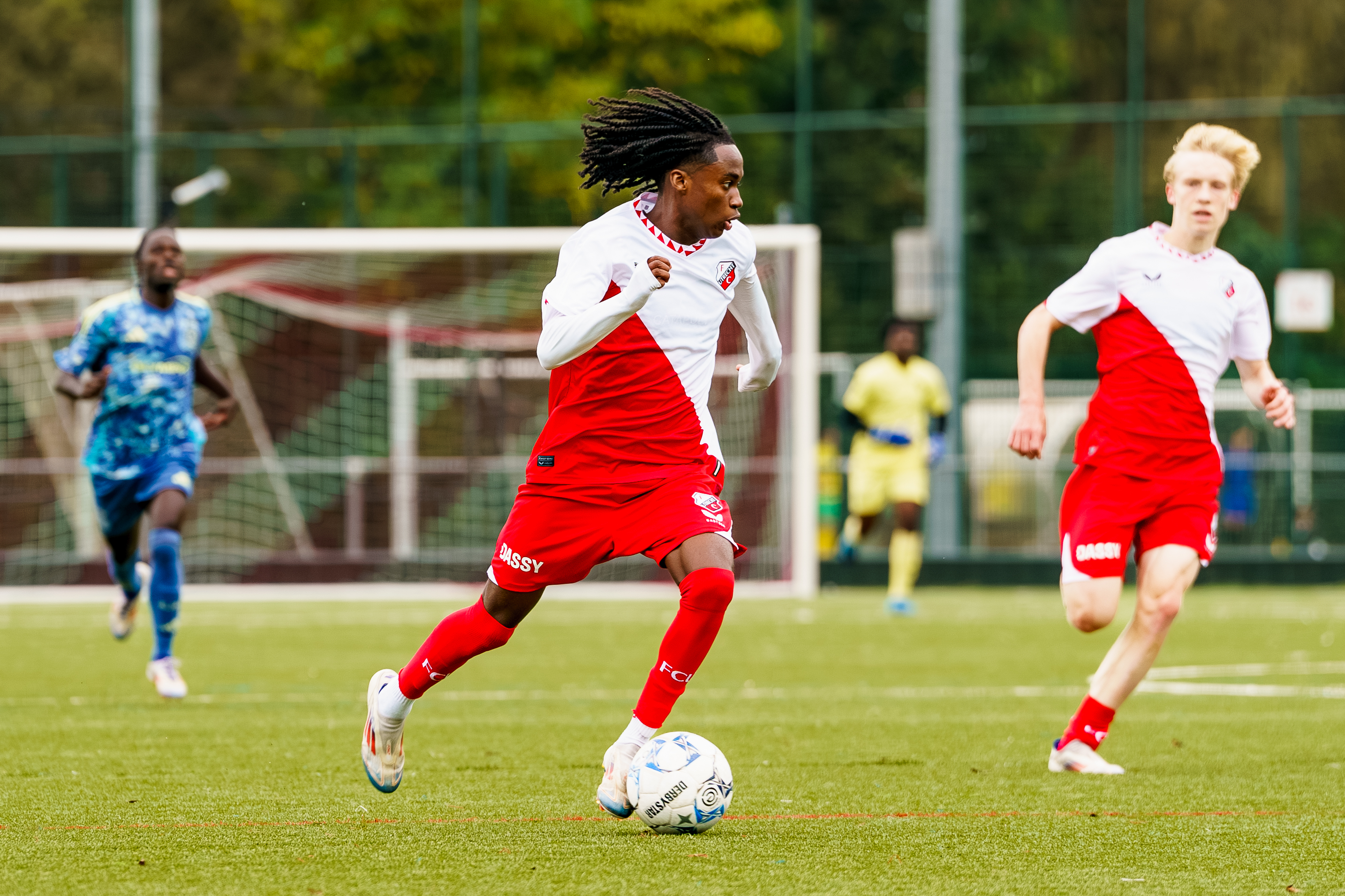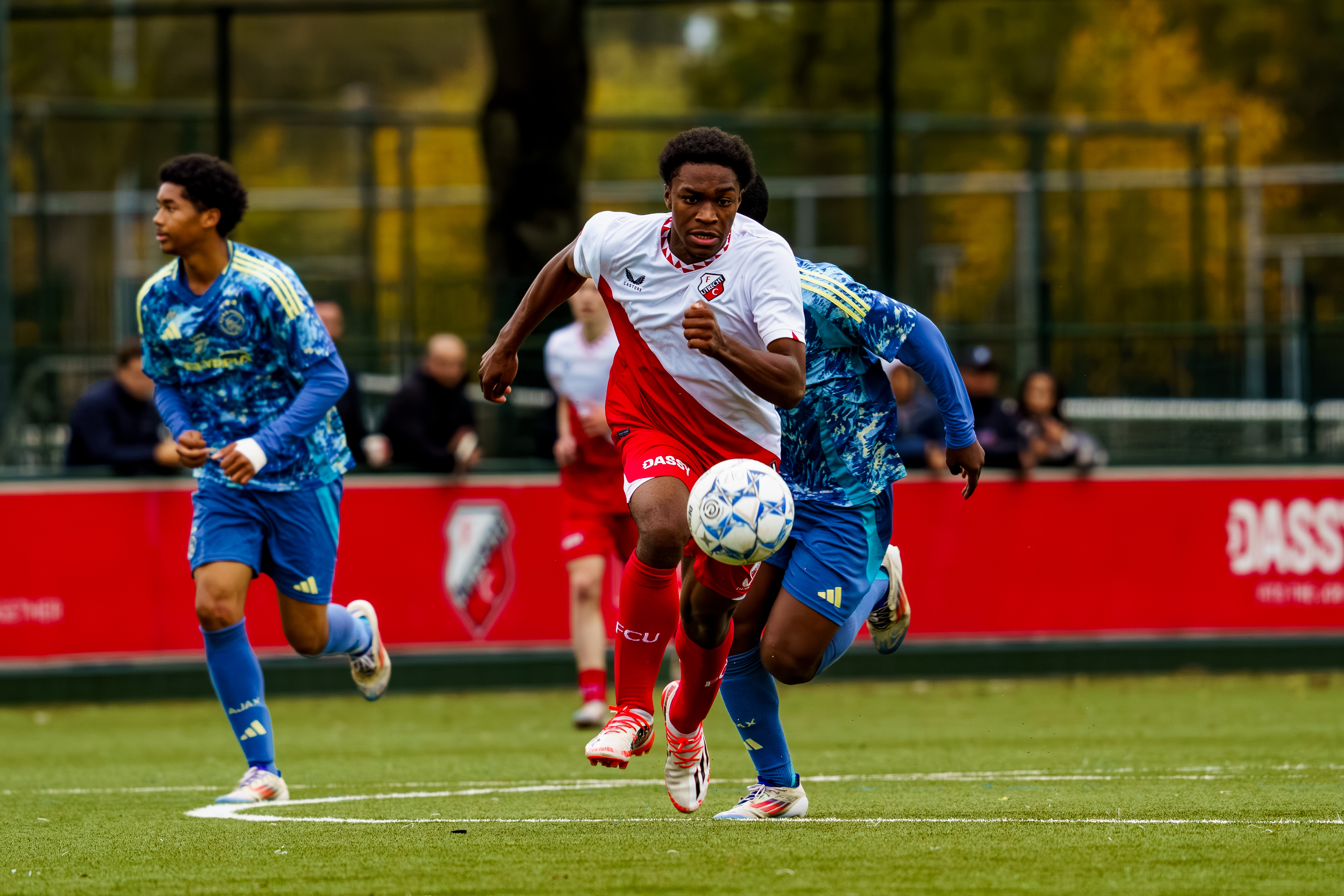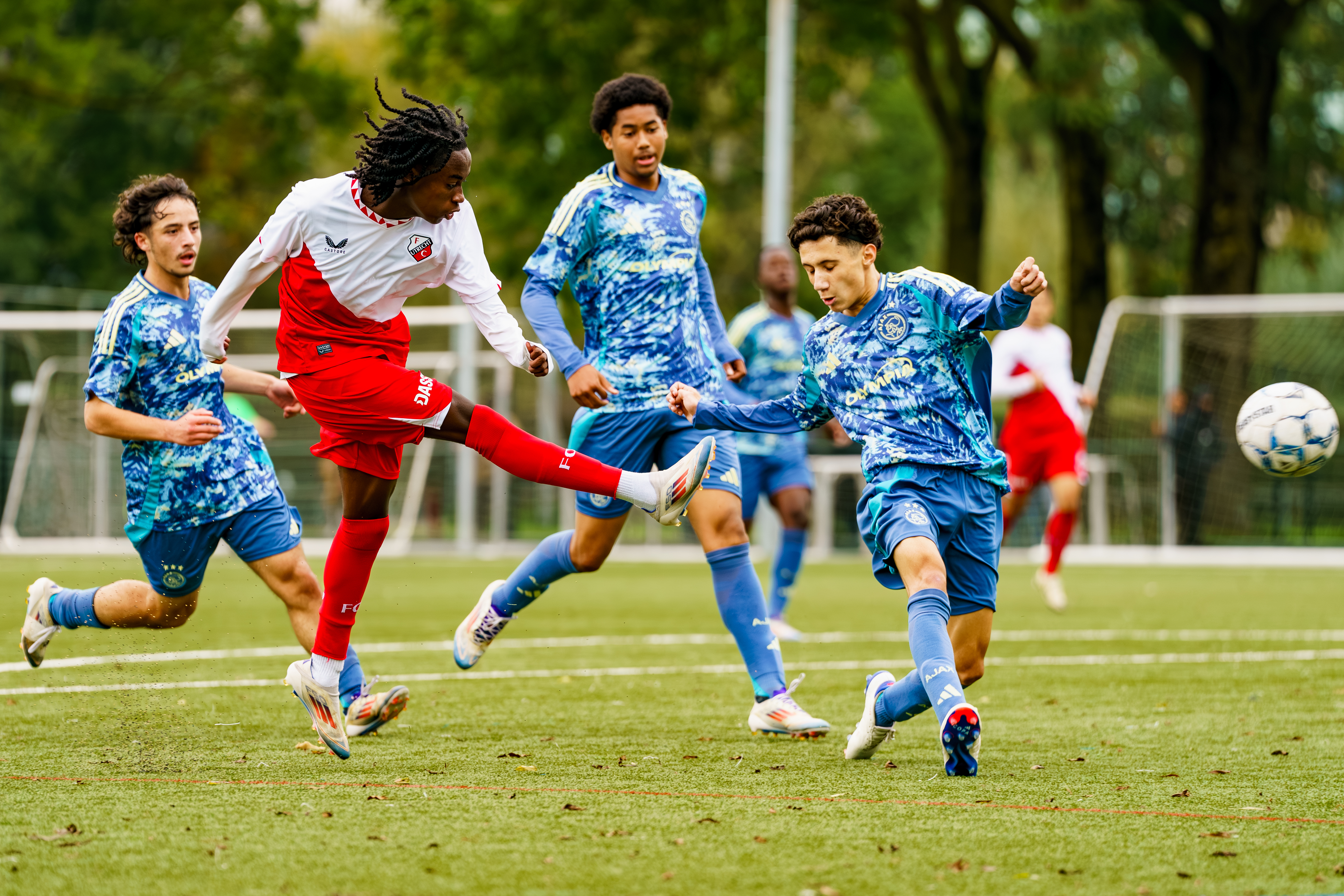 Zaterdagmiddag om 15.00 uur klinkt het fluitsignaal van scheidsrechter Tony van Waveren voor de wedstrijd FC Utrecht O17 tegen Ajax O17.