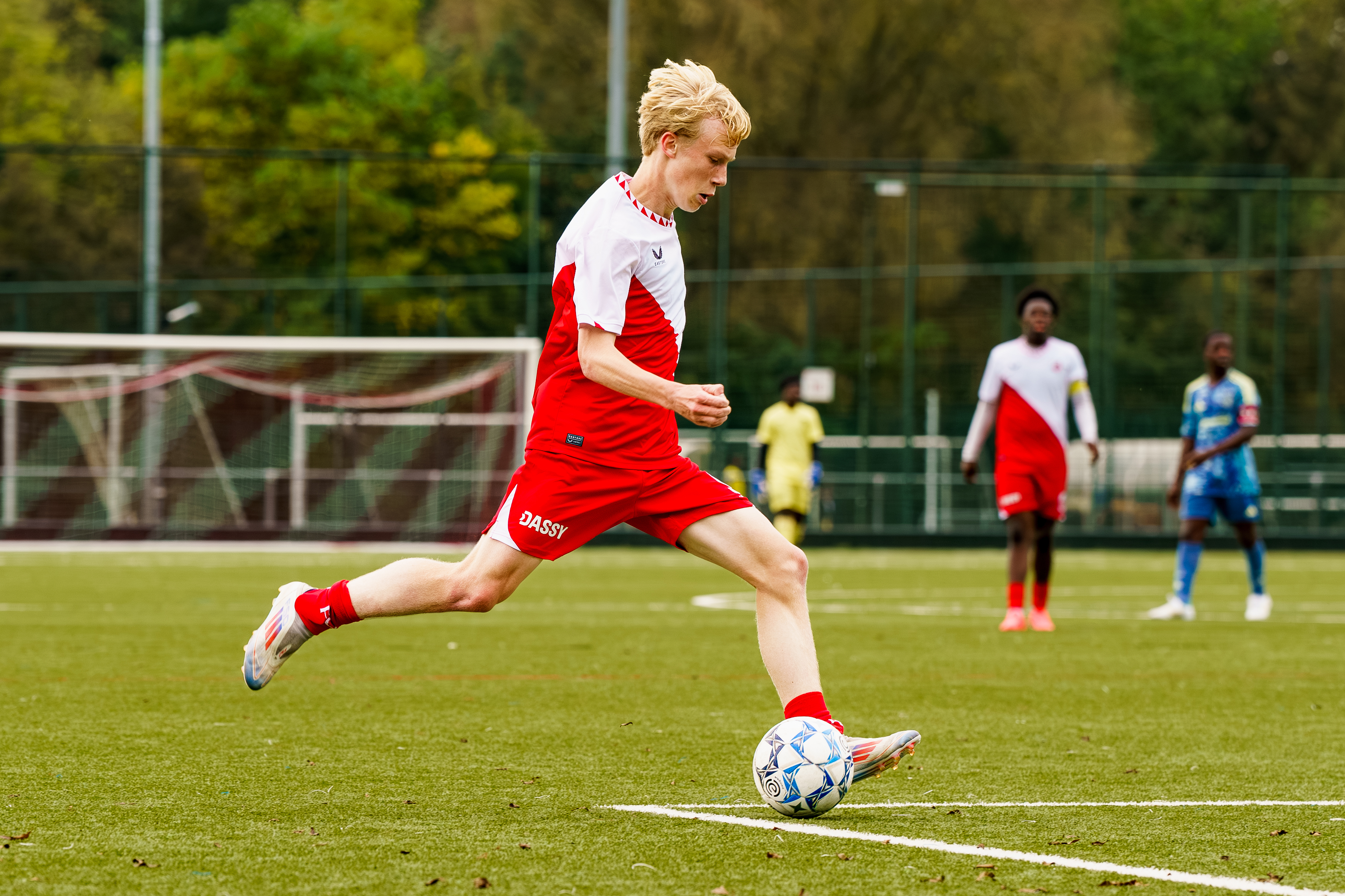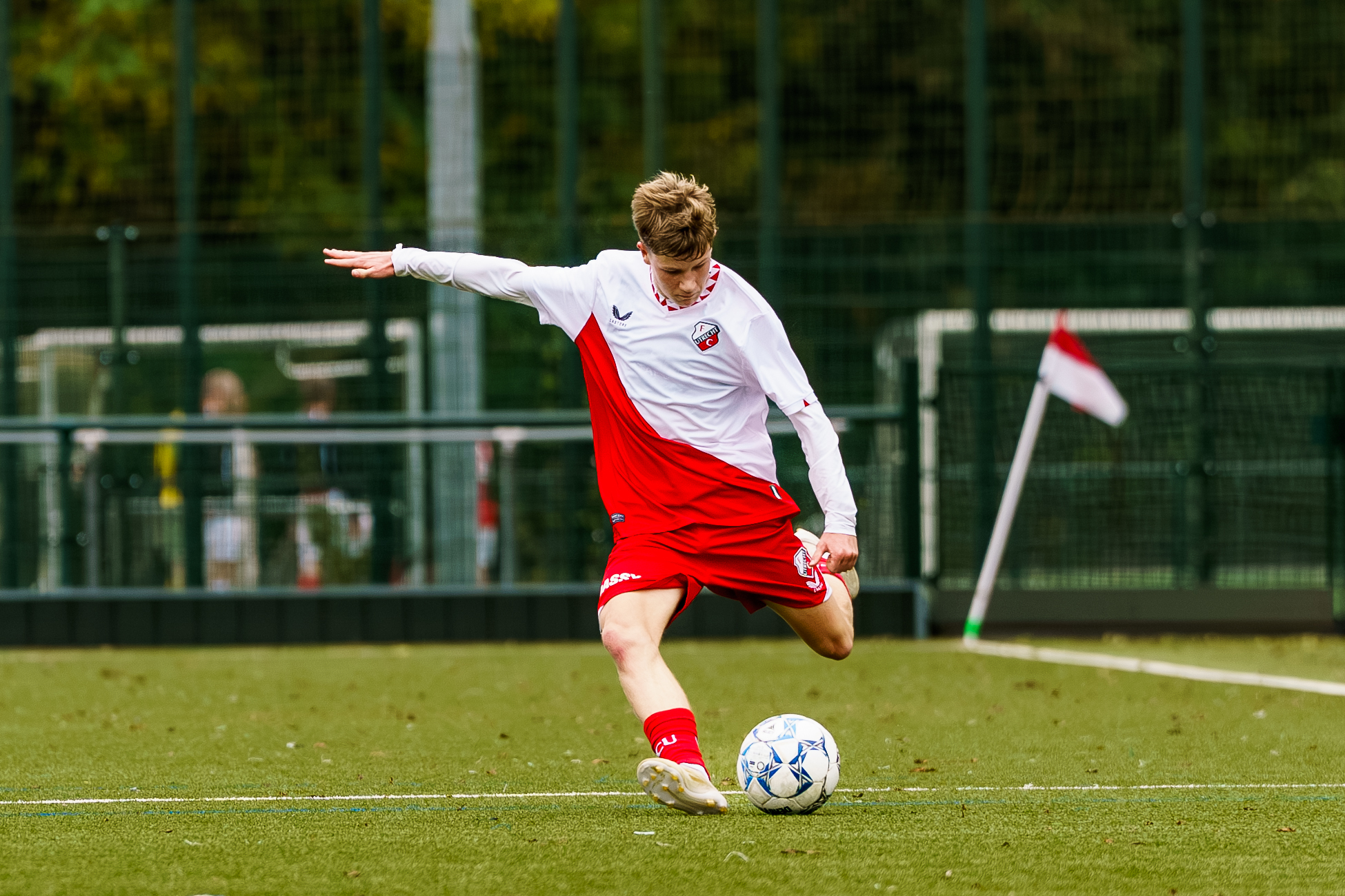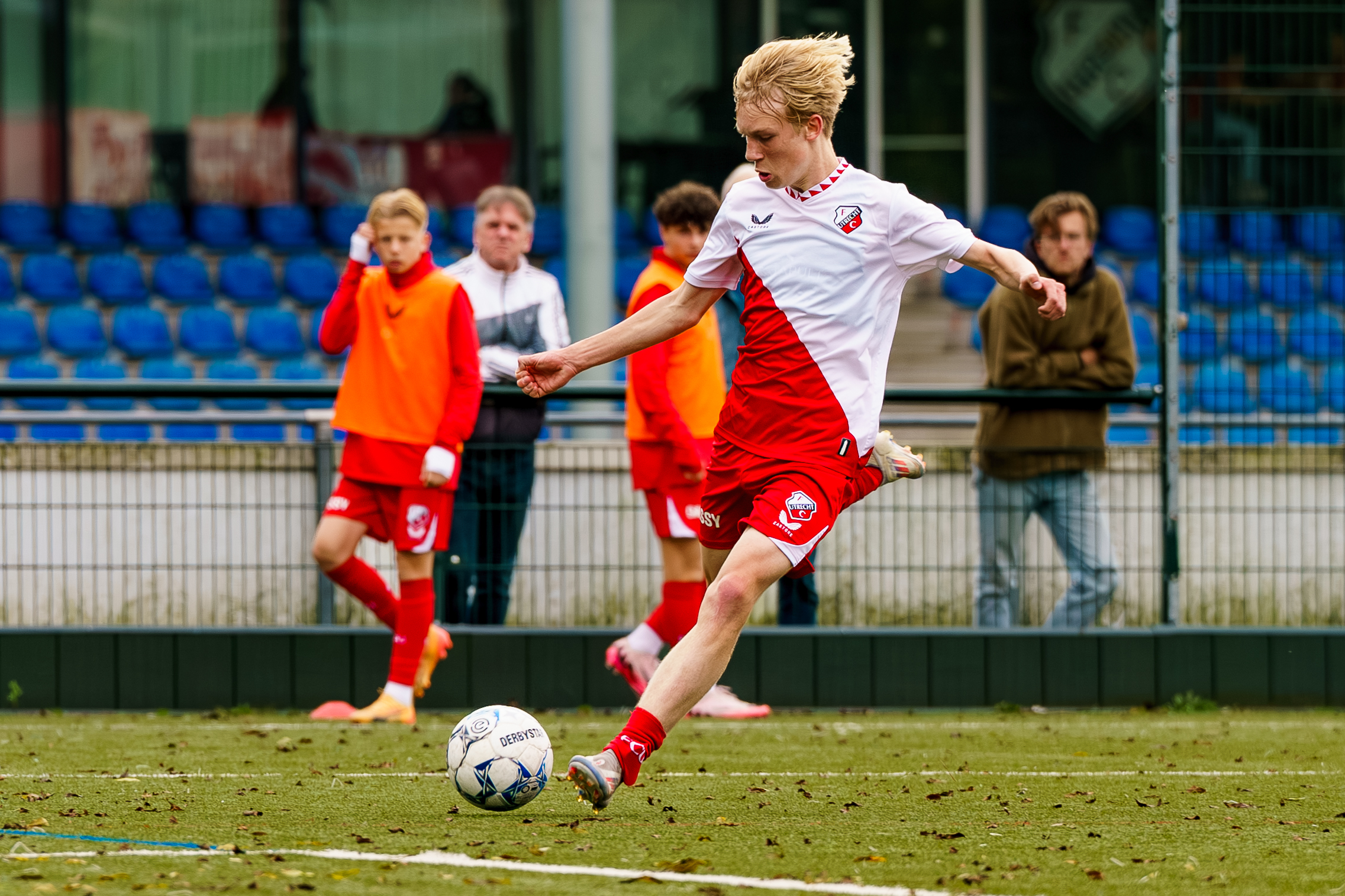 Zaterdagmiddag om 15.00 uur klinkt het fluitsignaal van scheidsrechter Tony van Waveren voor de wedstrijd FC Utrecht O17 tegen Ajax O17.