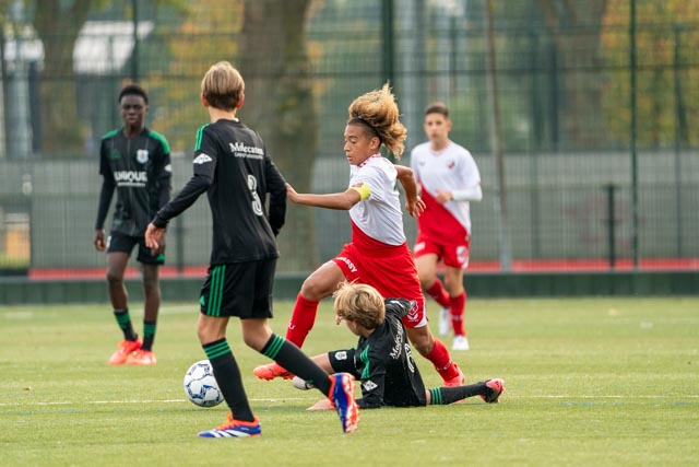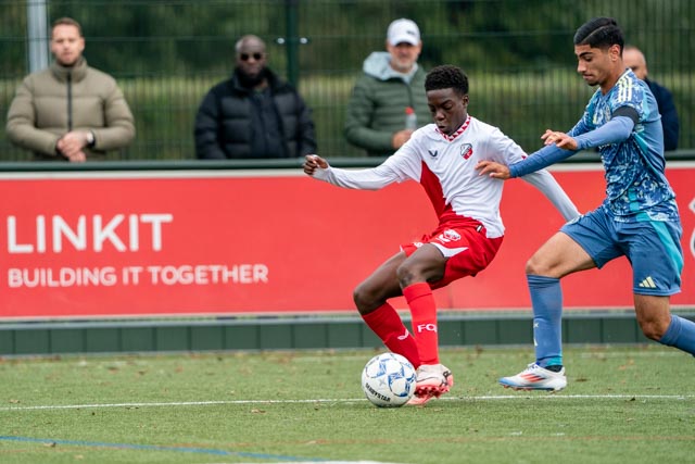 FC Utrecht O14 won vandaag met 2-1 van de onder 14 van PEC Zwolle. Na een 1-0 voorsprong voor rust werd het pas in de eindfase weer spannend doordat vlak voor tijd de gelijkmaker van PEC Zwolle viel. Twee minuten in de blessuretijd trokken de jongens uit Utrecht toch aan het langste eind.