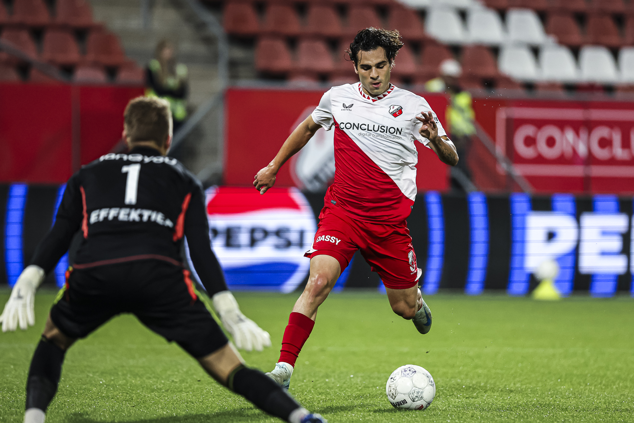 Het is de derde keer dat Tom de Graaff moet vissen na de break. In Stadion Galgenwaard slaan de bezoekers al snel na de rust toe via Mercera (0-2, schot in de verre bovenhoek) en doet ook invaller Fedde de Jong met nog een minuut of twintig te spelen een duit in het doelpuntenzakje. Hij verschalkt De Graaff met een afgemeten chip: 0-3.